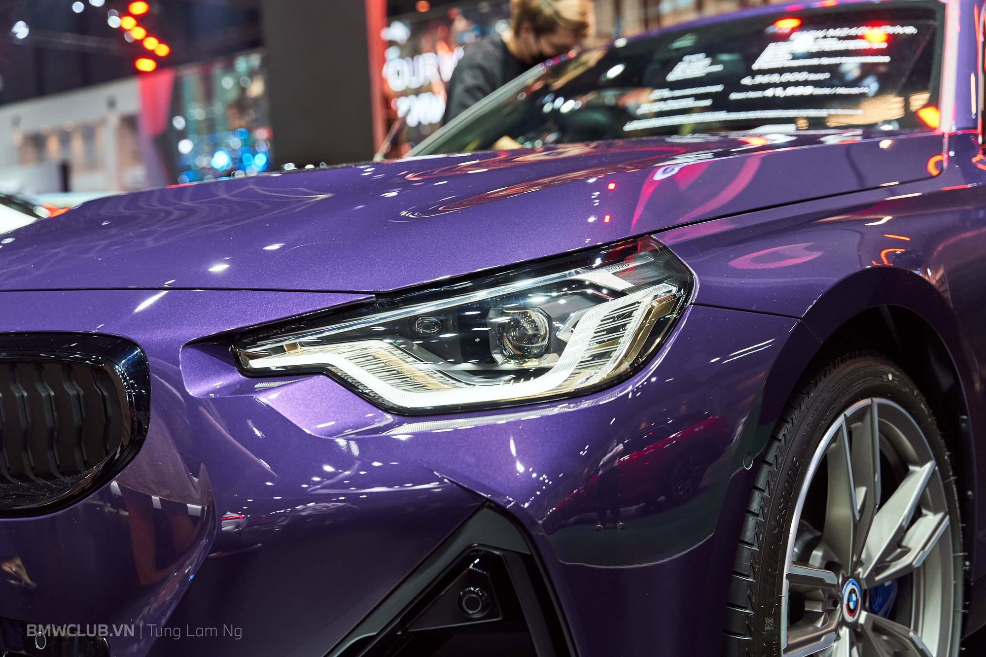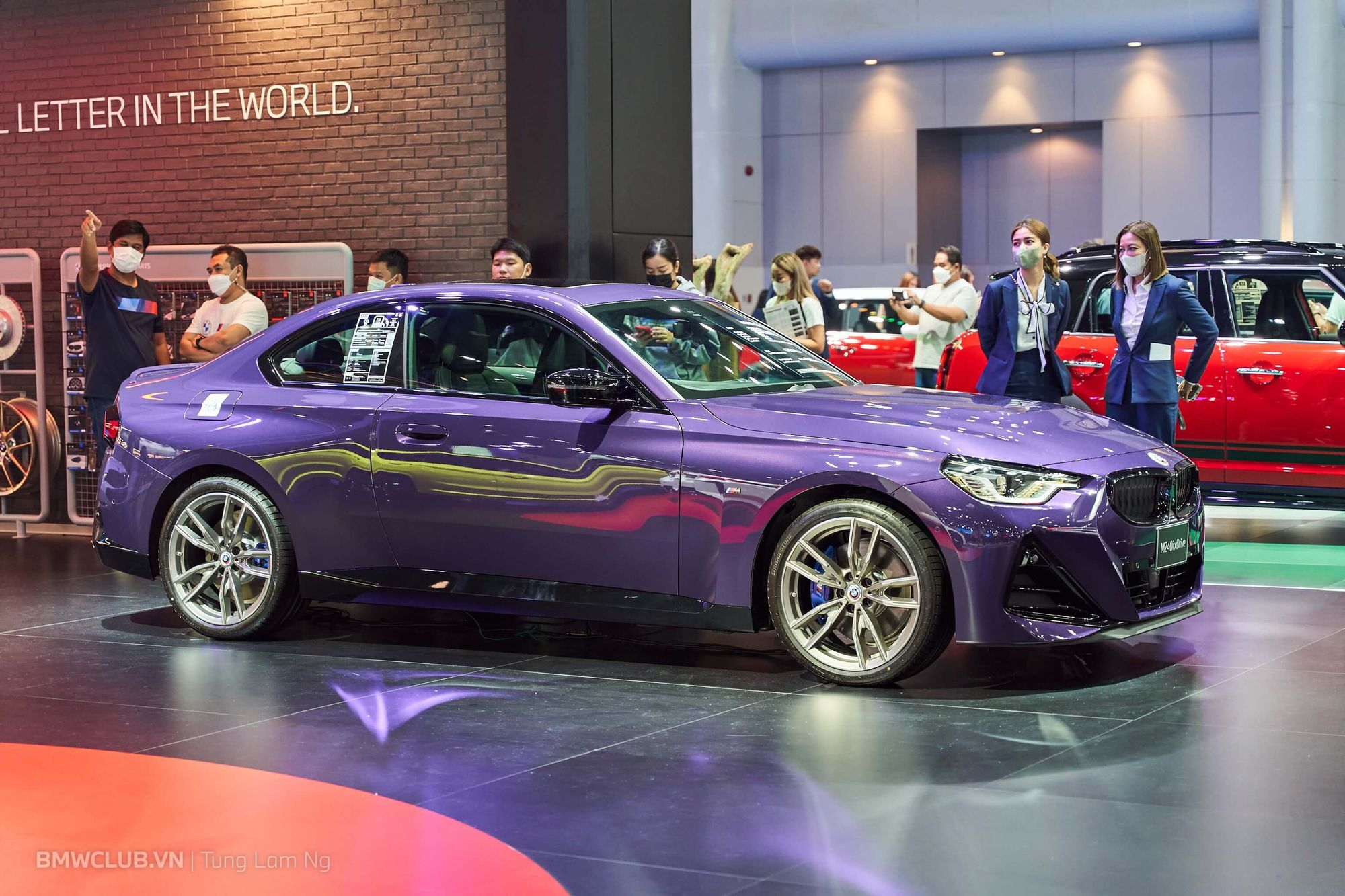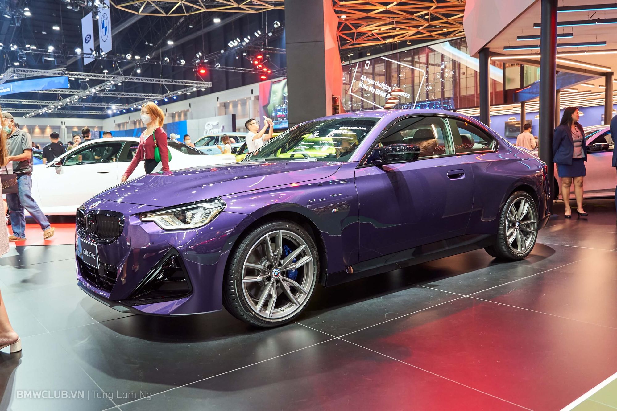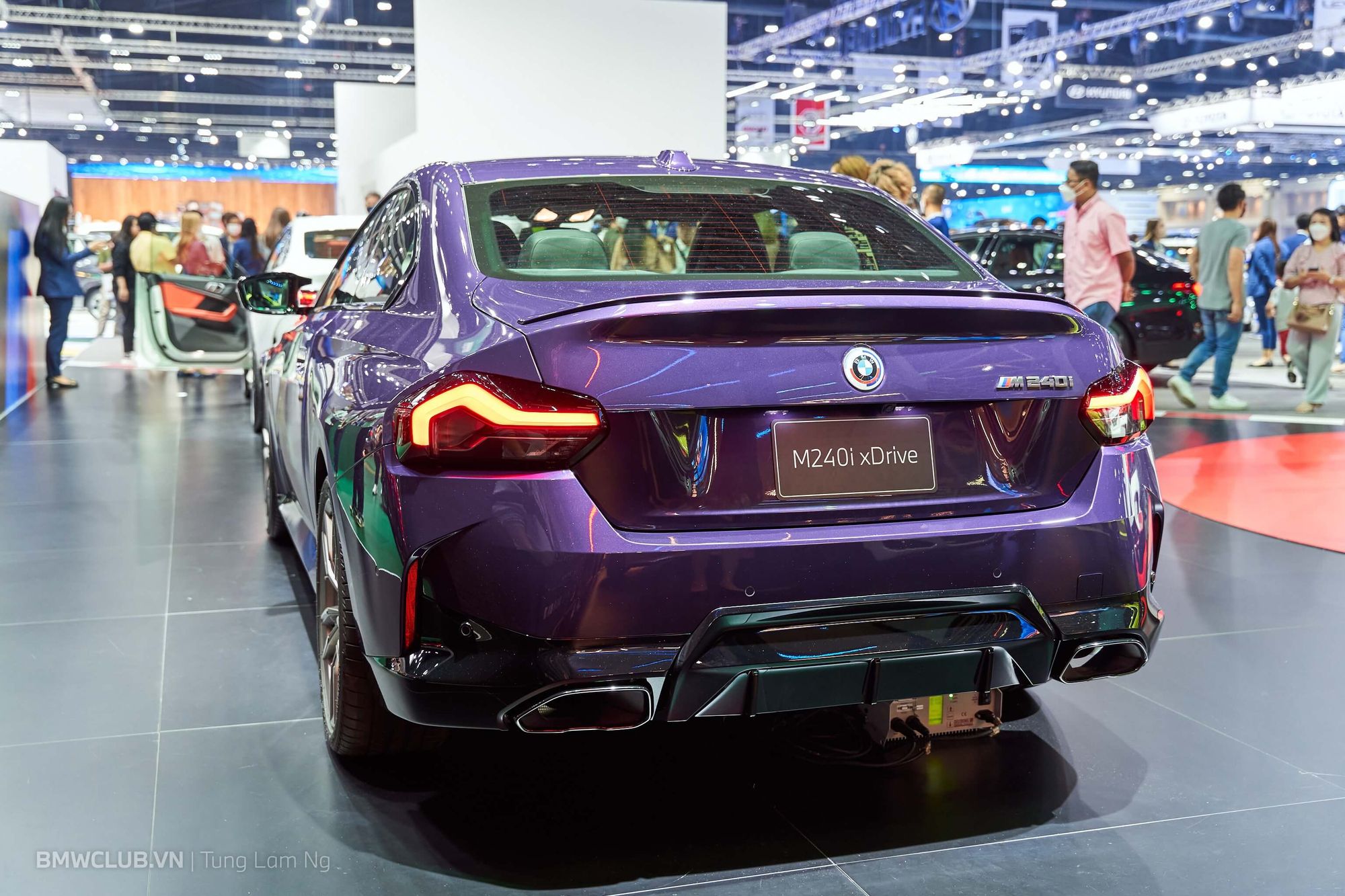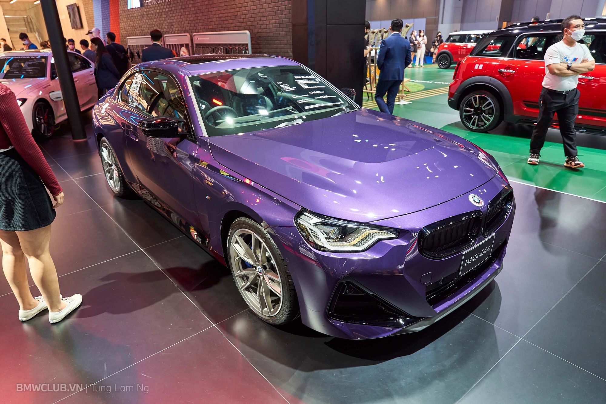 Bên cạnh đó BMW cũng trưng bày chiếc M240i xDrive màu tím cực nổi bật. Giá bán quy đổi của mẫu xe này là 2,9 tỉ VND, so với 4,44 tỉ VND cho chiếc M2.