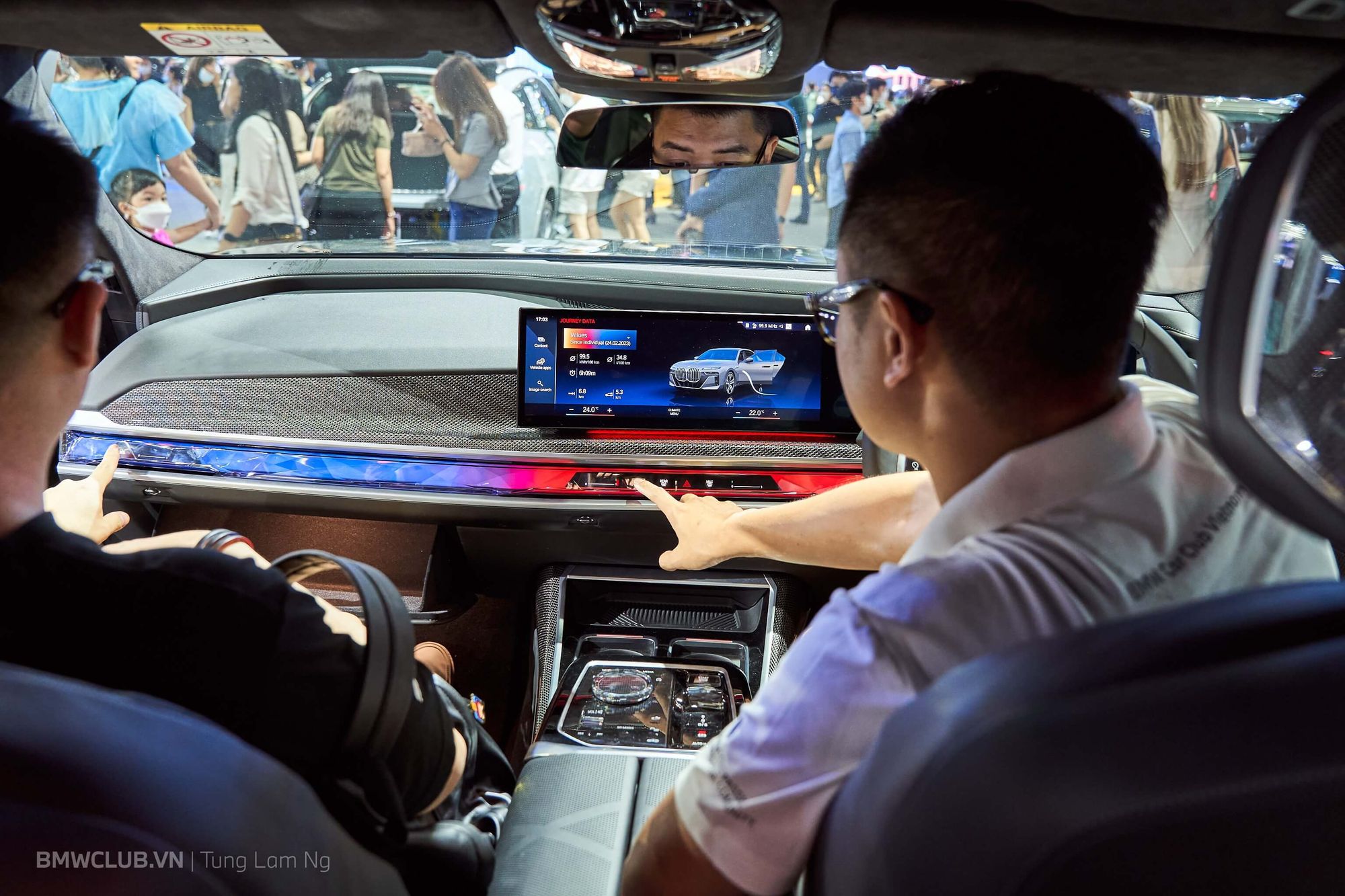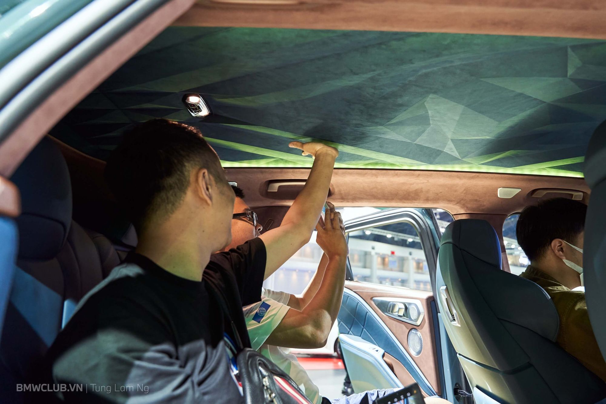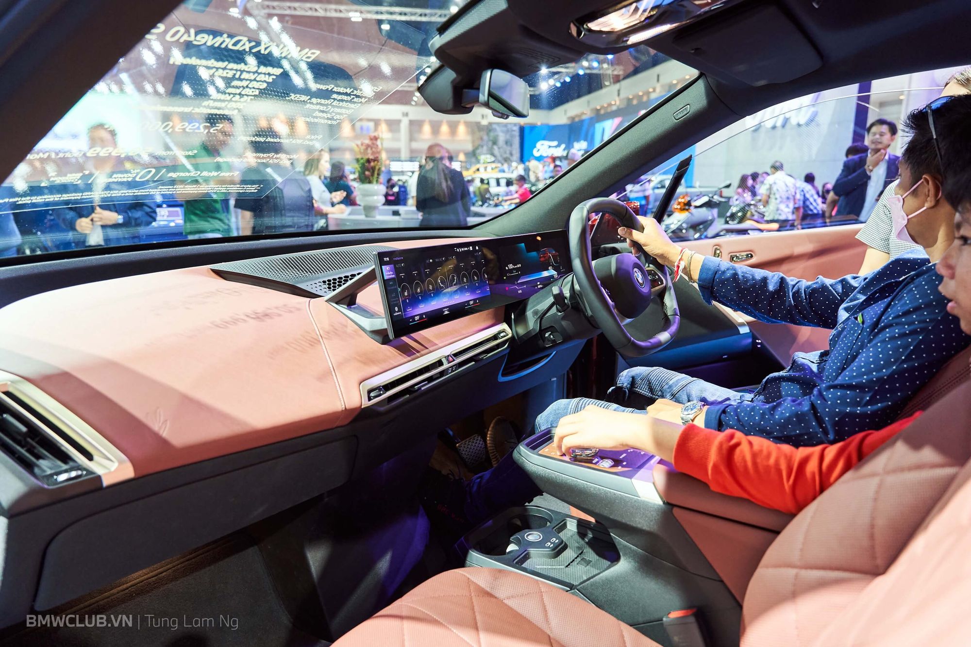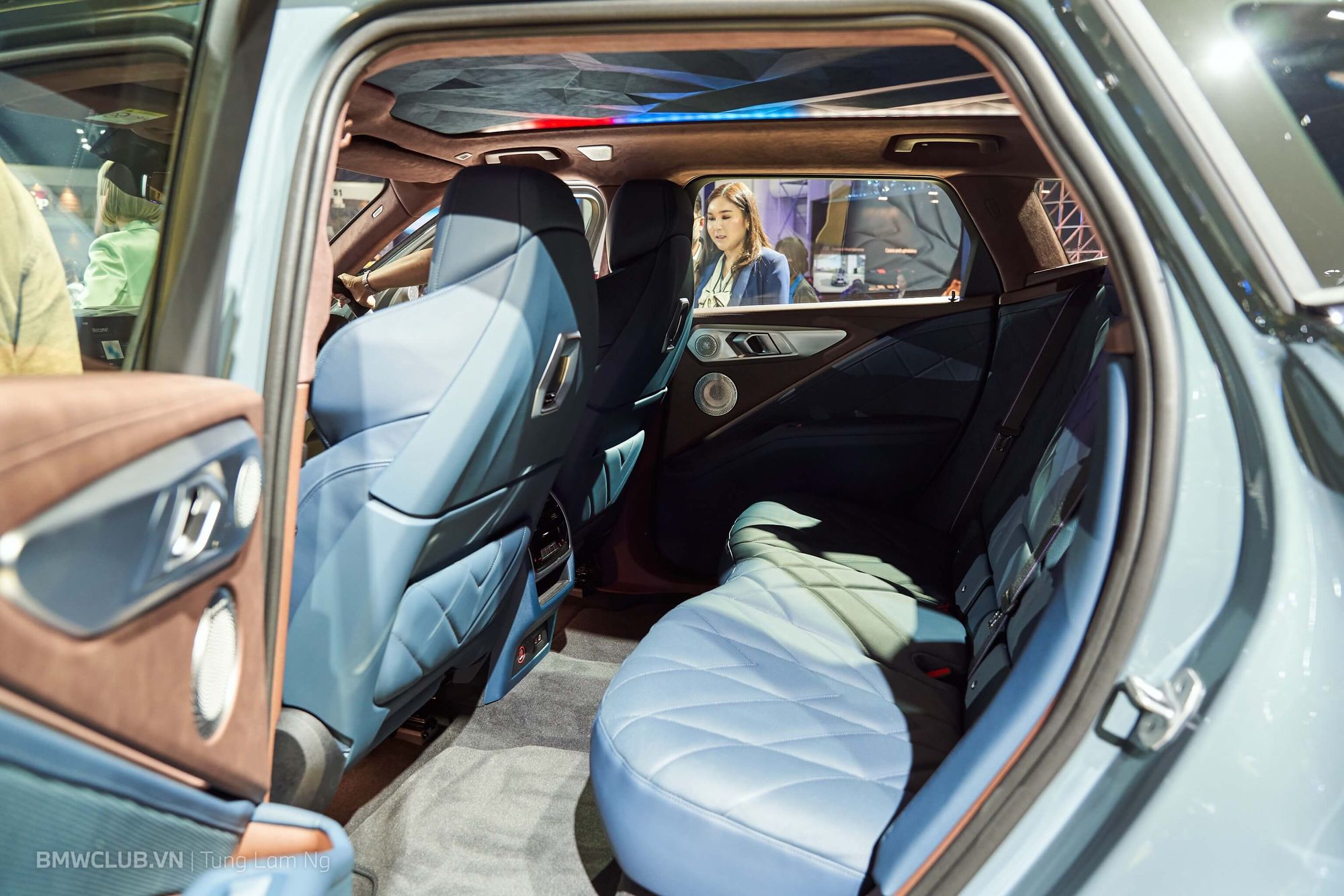 Thật đúng lúc anh em đang trầm trồ xung quanh chiếc XM thì có một vị khách VIP được hãng đưa đến trải nghiệm khoang nội thất - vẫn bị khóa kín suốt buổi triển lãm. Vậy là lại được tranh thủ luôn.