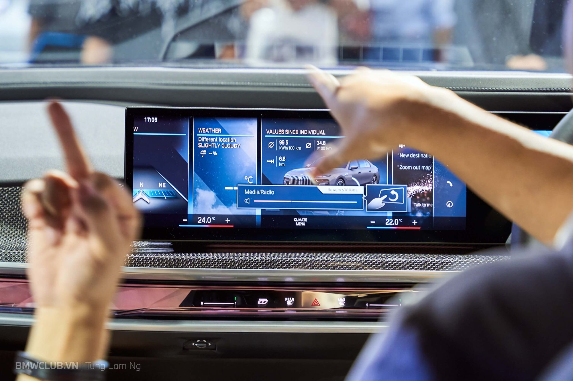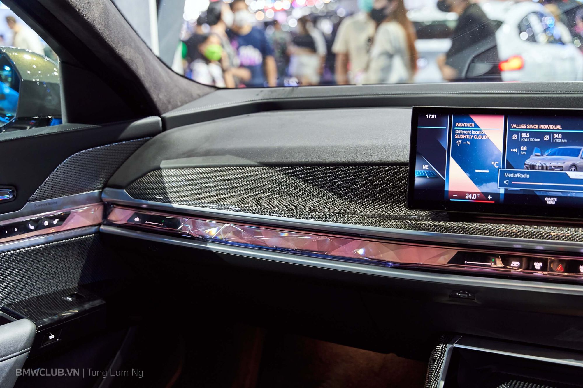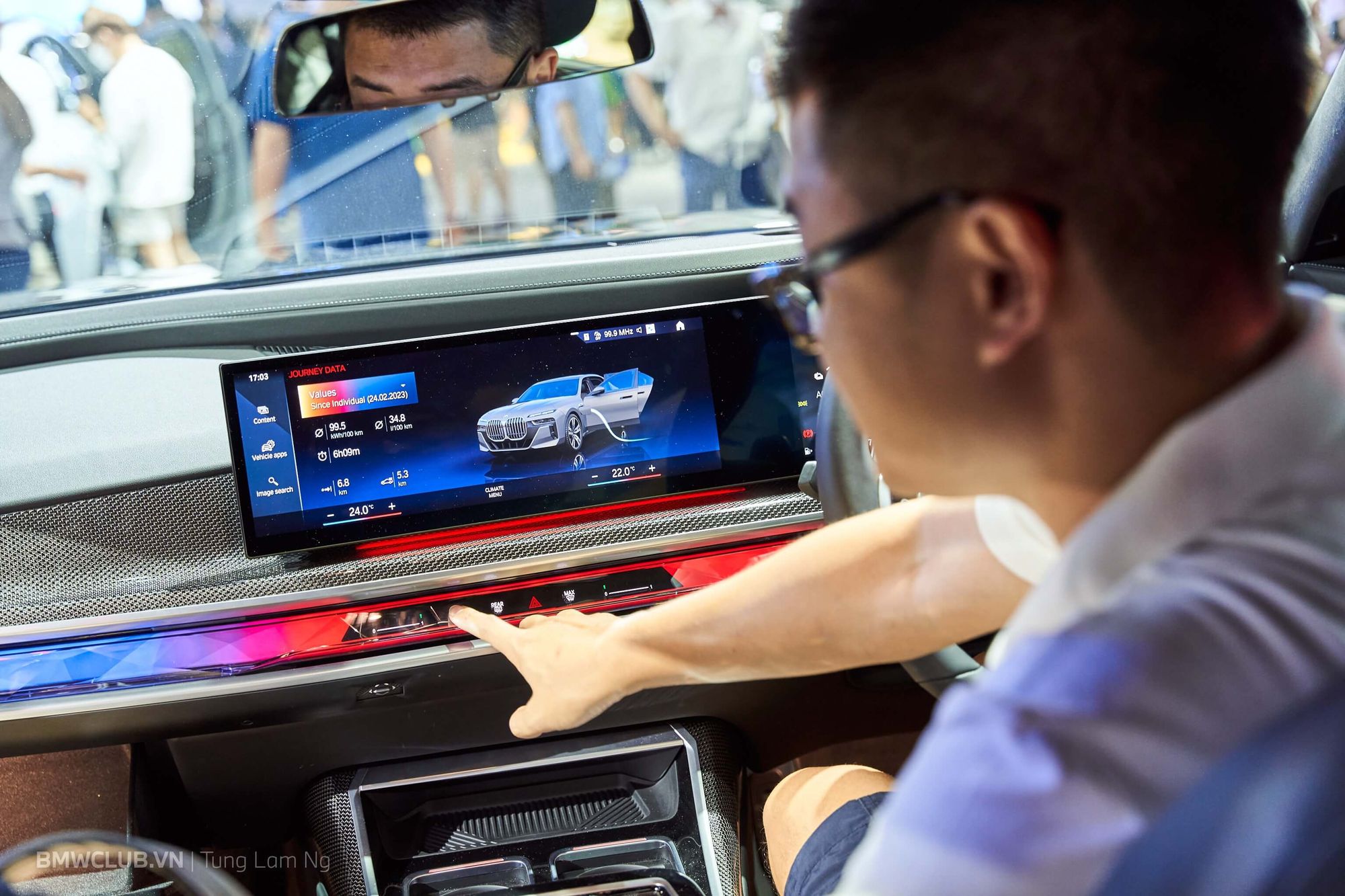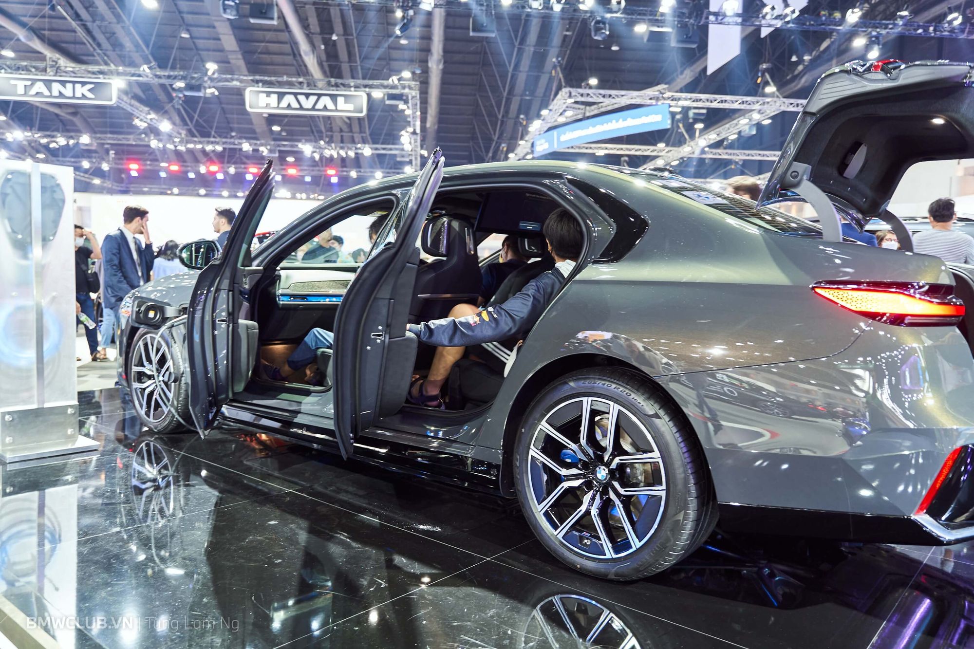 Thật đúng lúc anh em đang trầm trồ xung quanh chiếc XM thì có một vị khách VIP được hãng đưa đến trải nghiệm khoang nội thất - vẫn bị khóa kín suốt buổi triển lãm. Vậy là lại được tranh thủ luôn.