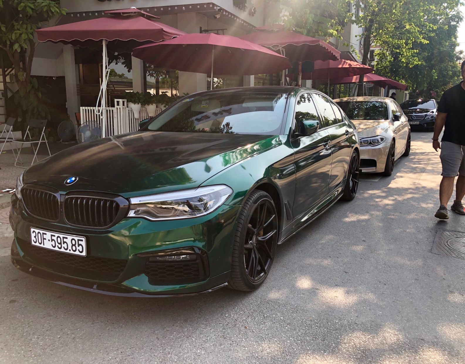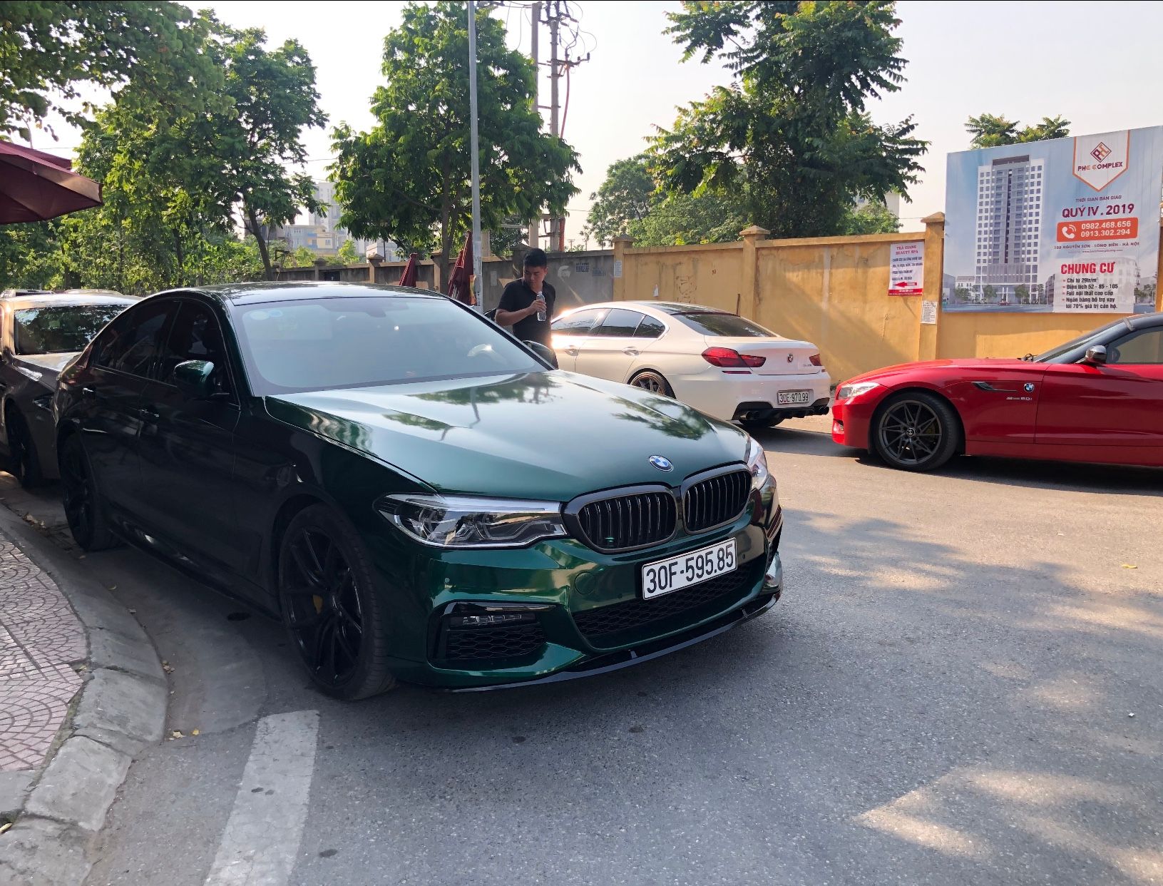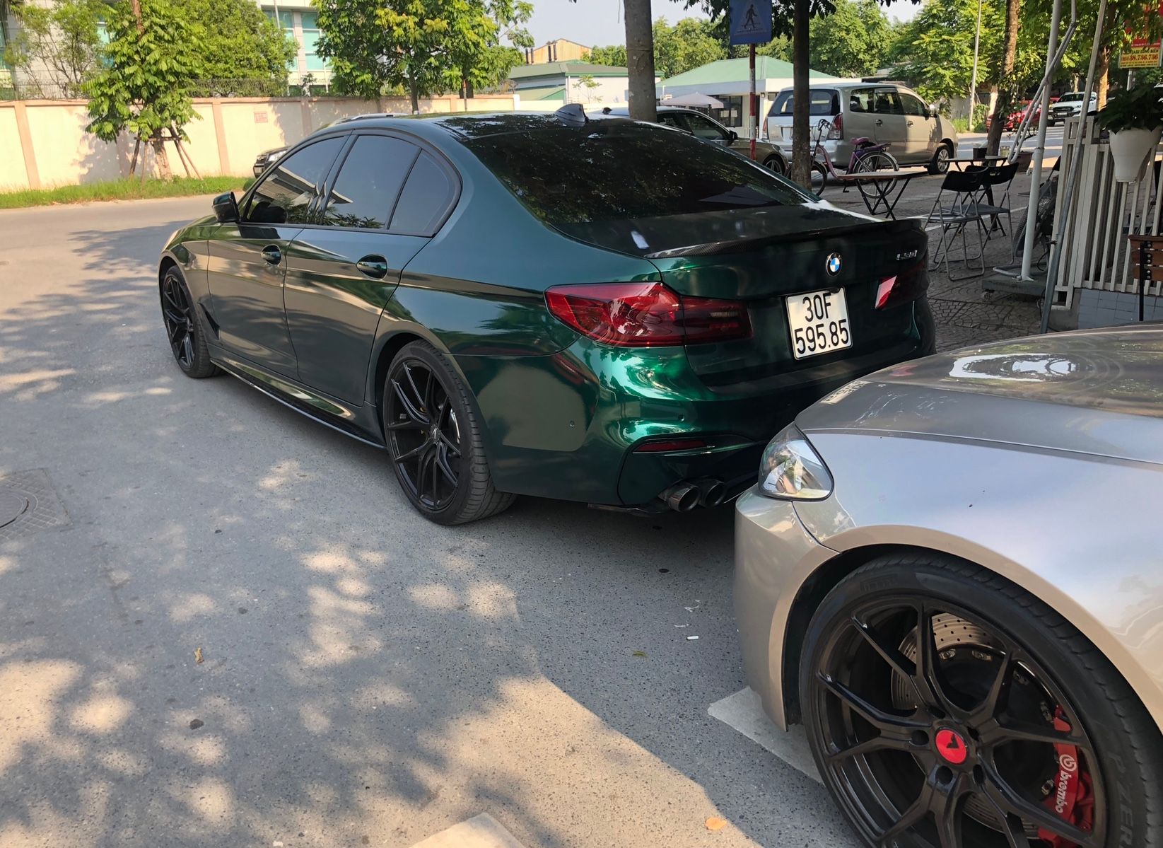 Ngoài ra hôm nay team kết nạp thêm một member mới sở hữu chiếc 530i G30 thế hệ mới. Cụ chủ rất chơi khi mạnh tay nâng cấp bodykit M Sport & hệ thống xả FI Exhaust kèm Downpipe. Âm thanh nghe khá lực và đanh. Ngoài ra xe còn được trang bị bộ mâm đến từ Z Performance. Điều đặc biệt là chiếc xe được cụ chủ wrap toàn xe với màu xanh lá đậm làm liên tưởng tới màu sơn British Racing Green đặc trưng của BMW.
