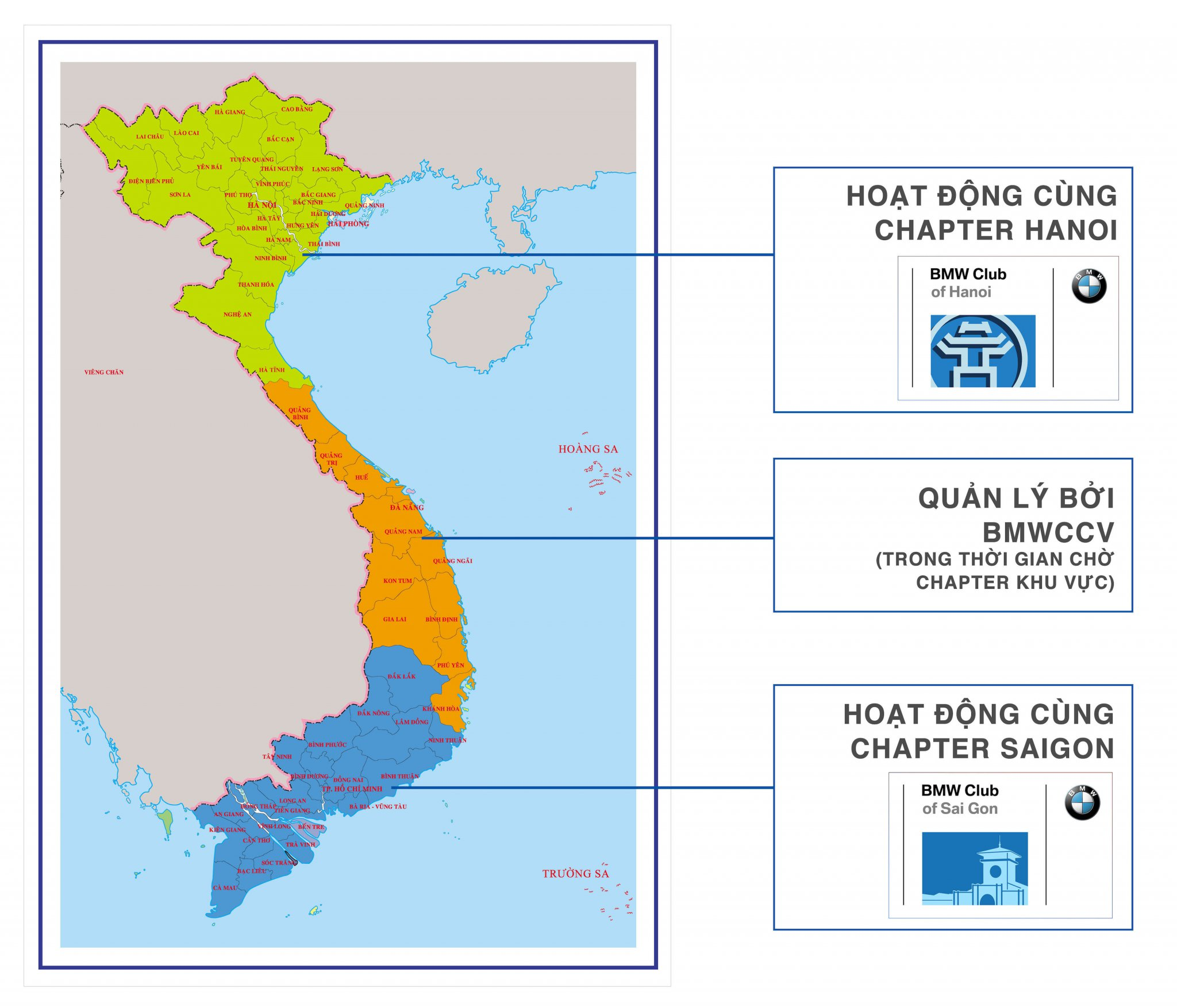 Bản đồ phân chia địa lý các Chapter thuộc BMW Car Club Vietnam: