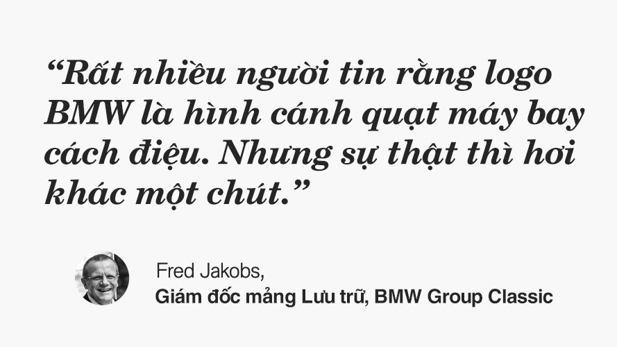 Tạo hình logo BMW có phải khởi nguồn từ gốc gác chế tạo động cơ máy bay hay không? Đây là câu hỏi được lật đi lật lại khá nhiều, và thực tế là điều này được chấp nhận rộng rãi vì nghe cũng… có vẻ lọt tai. Thế nhưng Fred Jakobs, giám đốc mảng Lưu trữ của BMW Group Classic, người có hiểu biết cực kì sâu rộng về thương hiệu BMW đã nói rằng: “Rất nhiều người tin rằng logo BMW là hình cánh quạt máy bay cách điệu. Nhưng sự thật thì hơi khác một chút.”