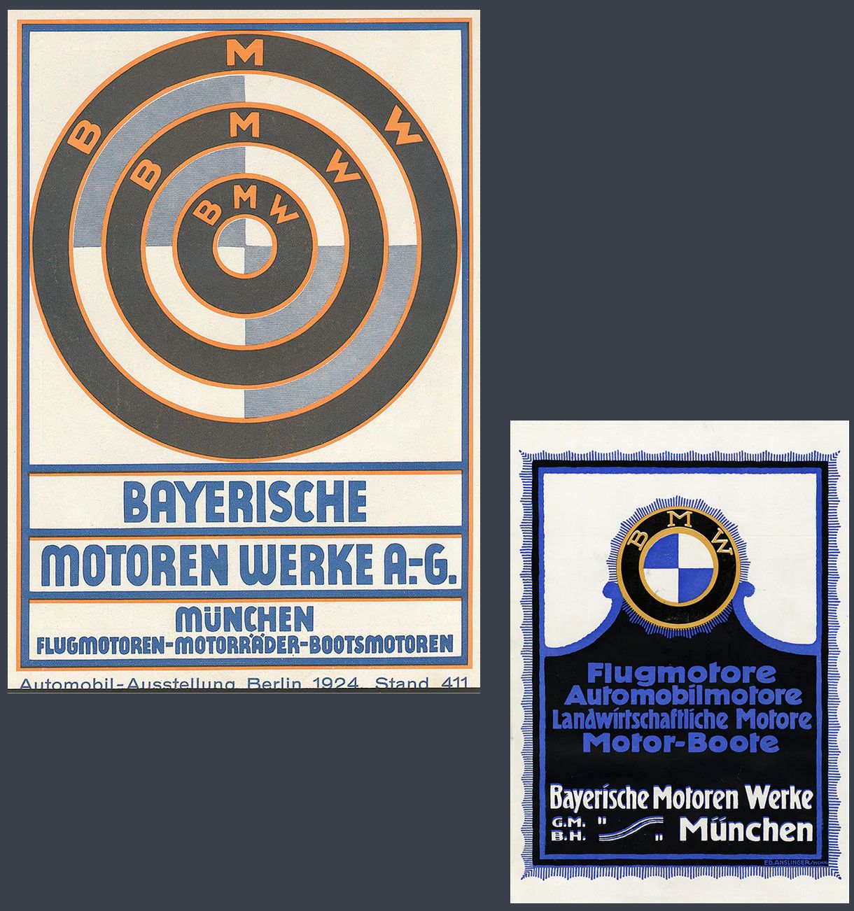 Khi cái tên BMW được đem đi đăng kí thương mại vào tháng 7 năm 1917, thậm chí nó còn chẳng đi kèm logo. Quảng cáo đầu tiên của công ty vào thời gian đó cũng không có sự xuất hiện của bất cứ logo hay biểu tượng nào. Mặc dù vậy, bên cạnh động cơ máy bay thì hãng cũng đã vạch ra hướng đi rõ ràng: sẽ sản xuất động cơ cho ô tô, các loại máy móc nông nghiệp, tàu thuyền… trong tương lai.