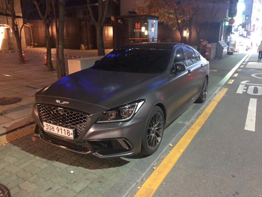 Tại đây em gần như không thấy bóng dáng của một chiếc Toyota nào, thay vào đó là rất nhiều mẫu Hyundai mới phải nói là nhìn ngoài đời thực rất đẹp, điển hình như: G70 và G80.