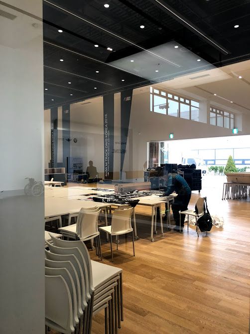 Em chụp lén được một bộ phận nhân viên đang chuẩn bị cho sự kiện lớn diễn ra tại đây. Khả năng cao là họ tổ chức ngày hội đào tạo lái xe cho các khách hàng trên toàn thế giới (em đoán vậy)
