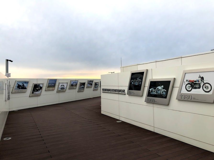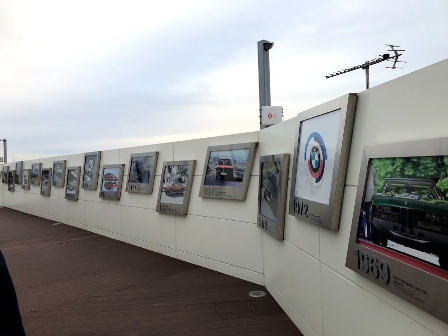 Ở đây họ xây một chiếc cầu đi lên trên cao để khách tham quan lên đây xem các bài tập cũng như những bài biểu diễn lái xe chuyên nghiệp. Khi bước lên cầu thang lên cầu họ bố trí một khu trưng bày ảnh về lịch sử BMW rất bắt mắt.