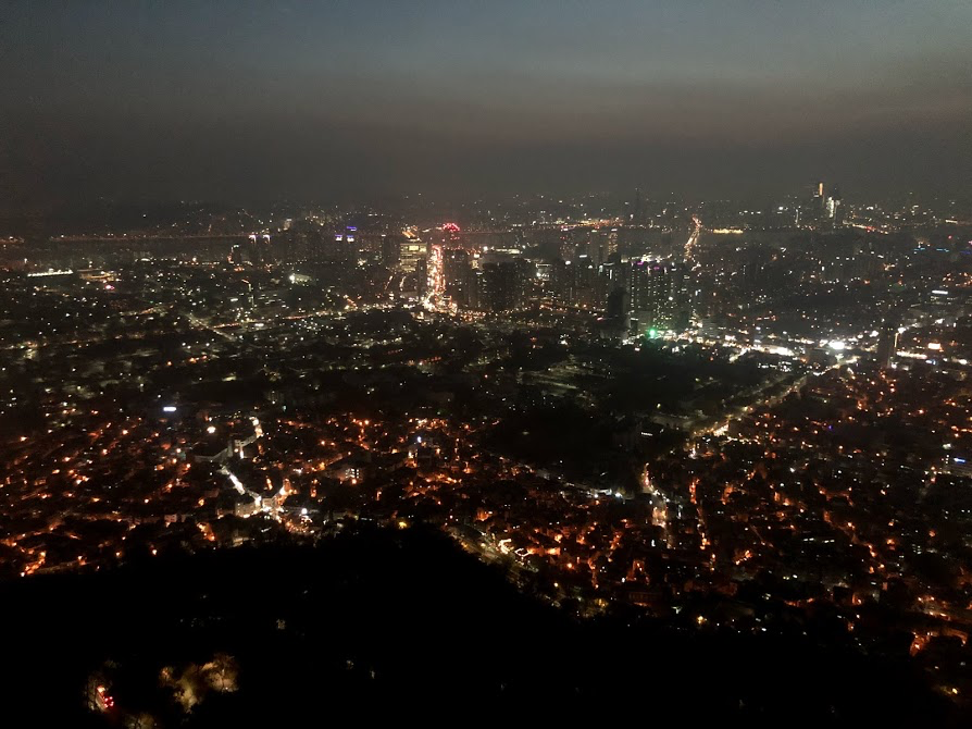 Còn đây là khung cảnh toàn thành phố Seoul vào ban đêm khi đứng trên tháp Seoul em chụp. Tại đây em gặp vô số người Việt tới đây tham quan: