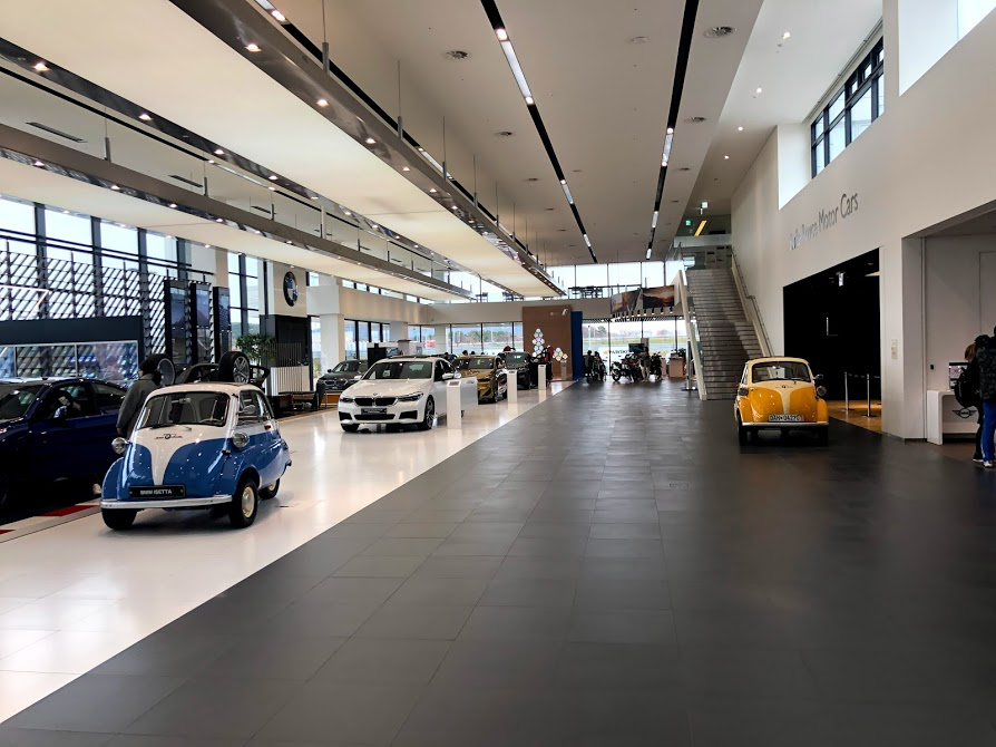 Khuôn viên trưng bày khá rộng, có đầy đủ hết các dòng xe từ dòng cơ sở, phiên bản M, các dòng xe điện (i3, i8), Motorrad cho đến các mẫu xe Individual. Ngoài ra có cả khuôn viên của MINI và Rolls Royce.