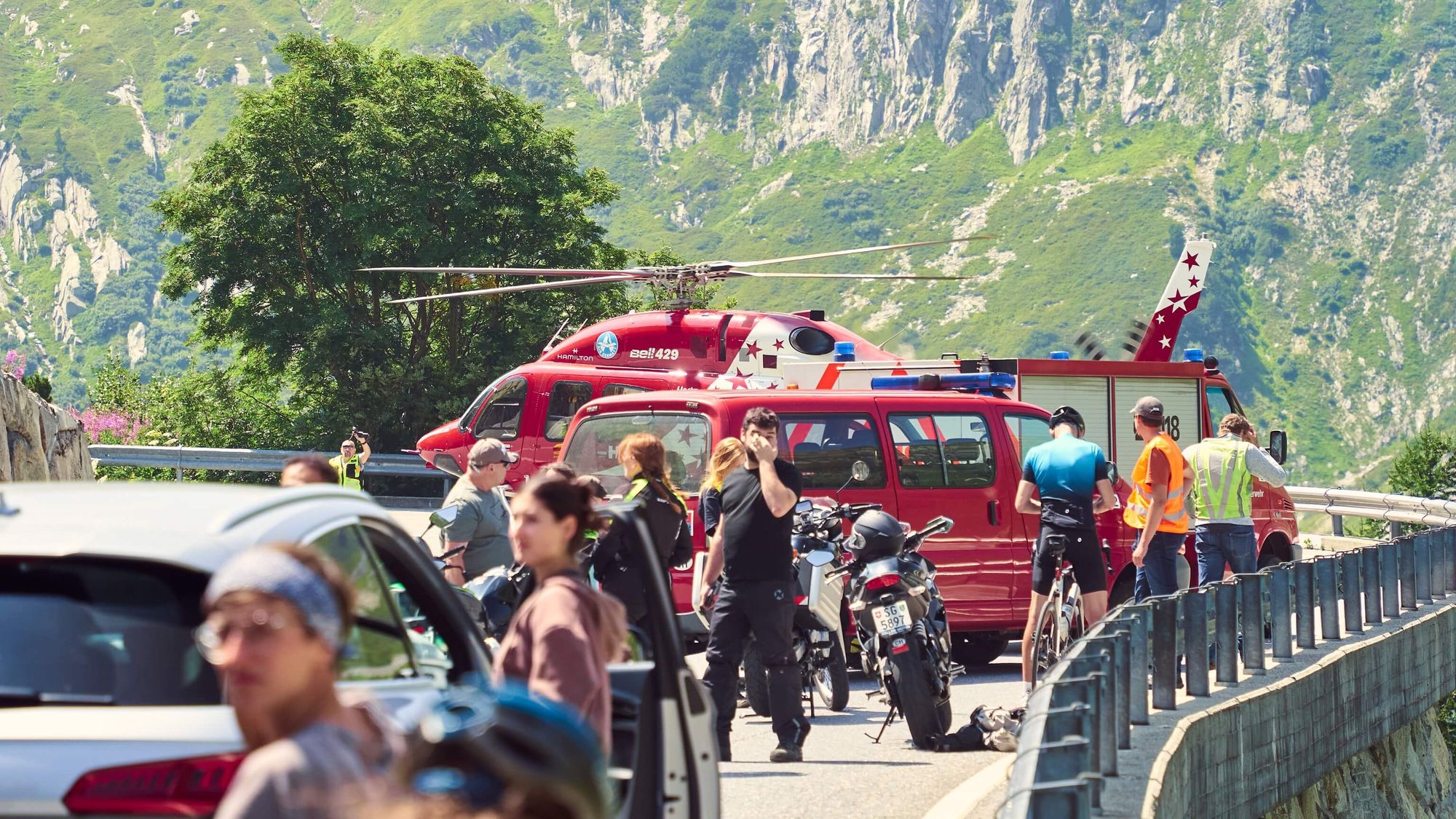 Trực thăng bay tới hạ cánh đúng khúc cua, đưa người bị nạn đi cấp cứu; cảnh tượng đặc biệt không một ai trong đoàn ngờ tới