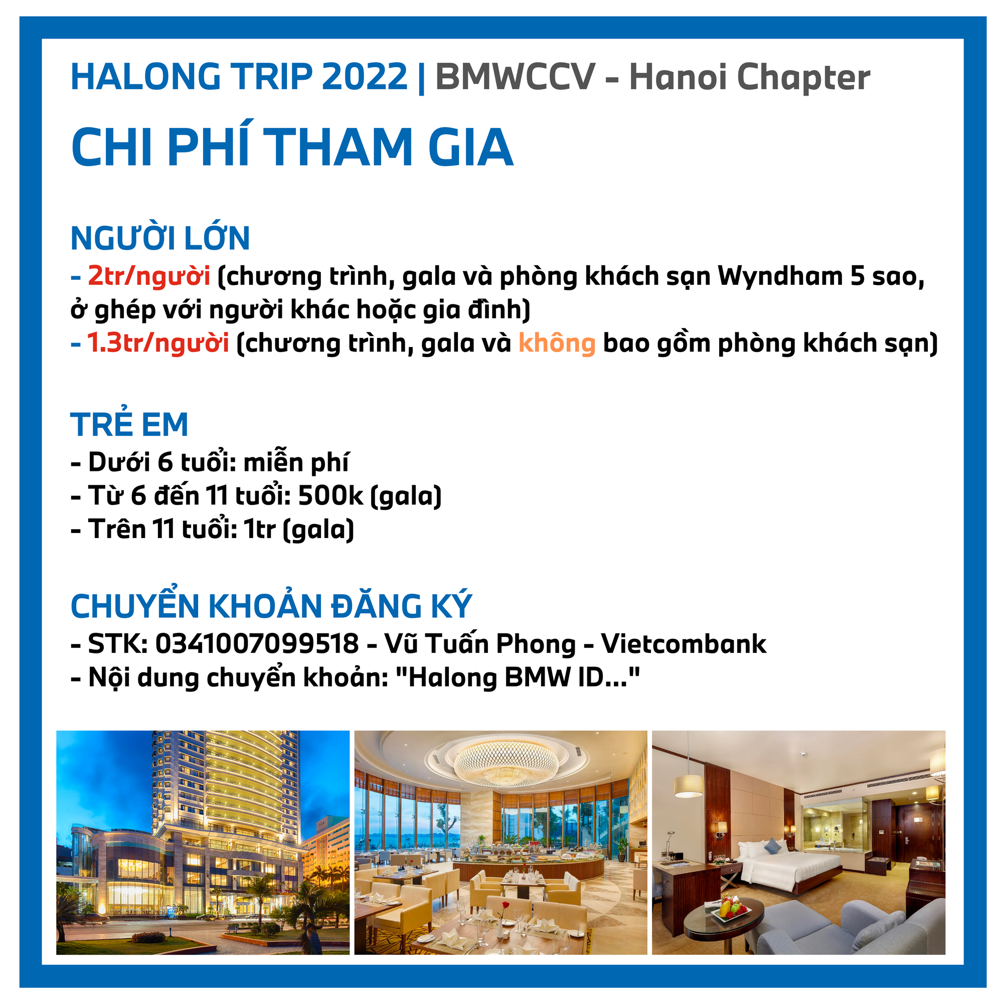 - Sơ bộ về chương trình: chạy roadtrip, chụp ảnh, quay video lưu niệm, thưởng thức gala dinner và ngủ qua đêm tại khách sạn Wyndham Halong 5 sao.
