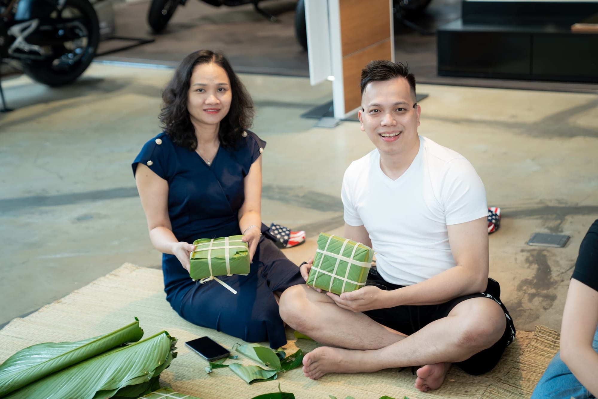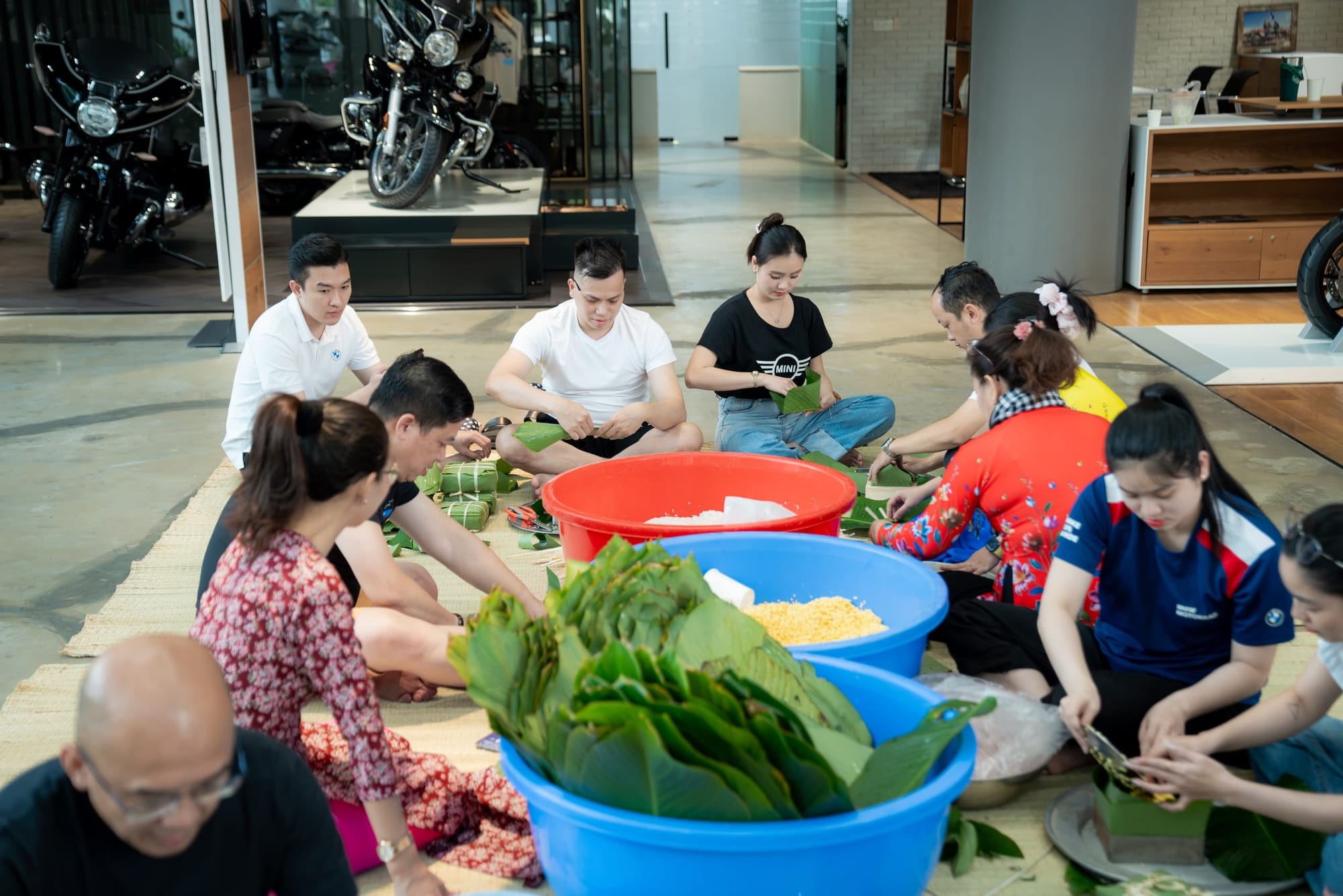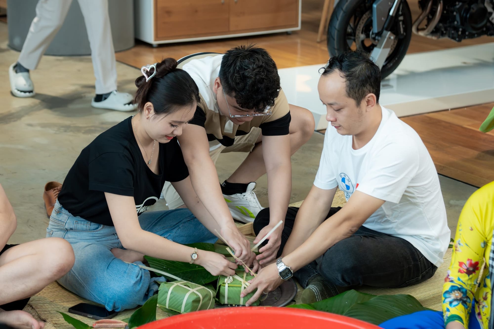 Ngay khi kết thúc chương trình Roadshow anh chị em Bimmer đã tập trung để bắt đầu chương trình gói bánh, mùi thơm của nếp, mùi lá dong và mùi thịt ướp đã làm không khi gói bánh thêm Xuân. Người biết gói hỗ trợ người chưa biết gói từng chiếc bánh chưng, bánh tét ra đời trong sự vui mừng và phấn khích của những người lần đầu gói.