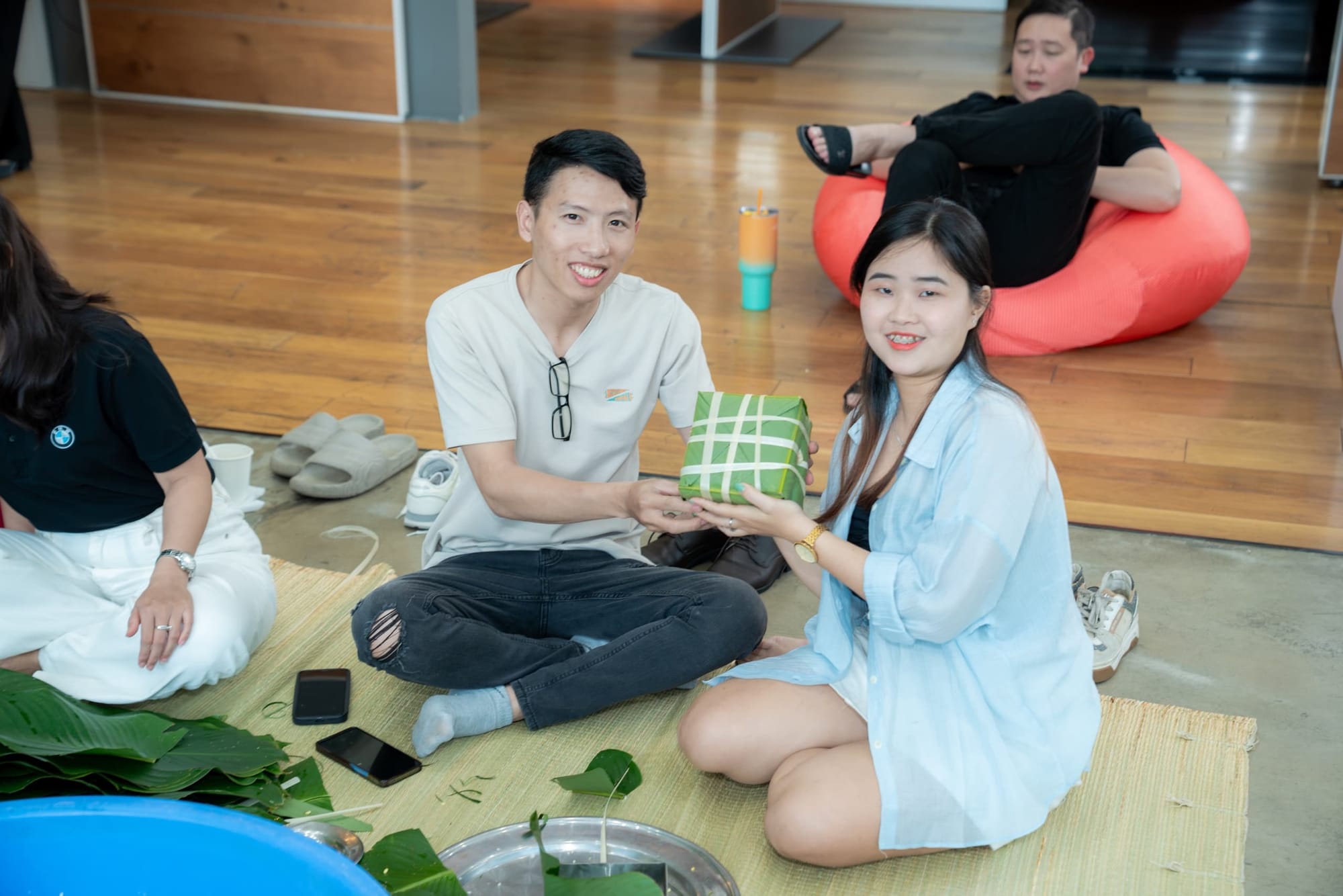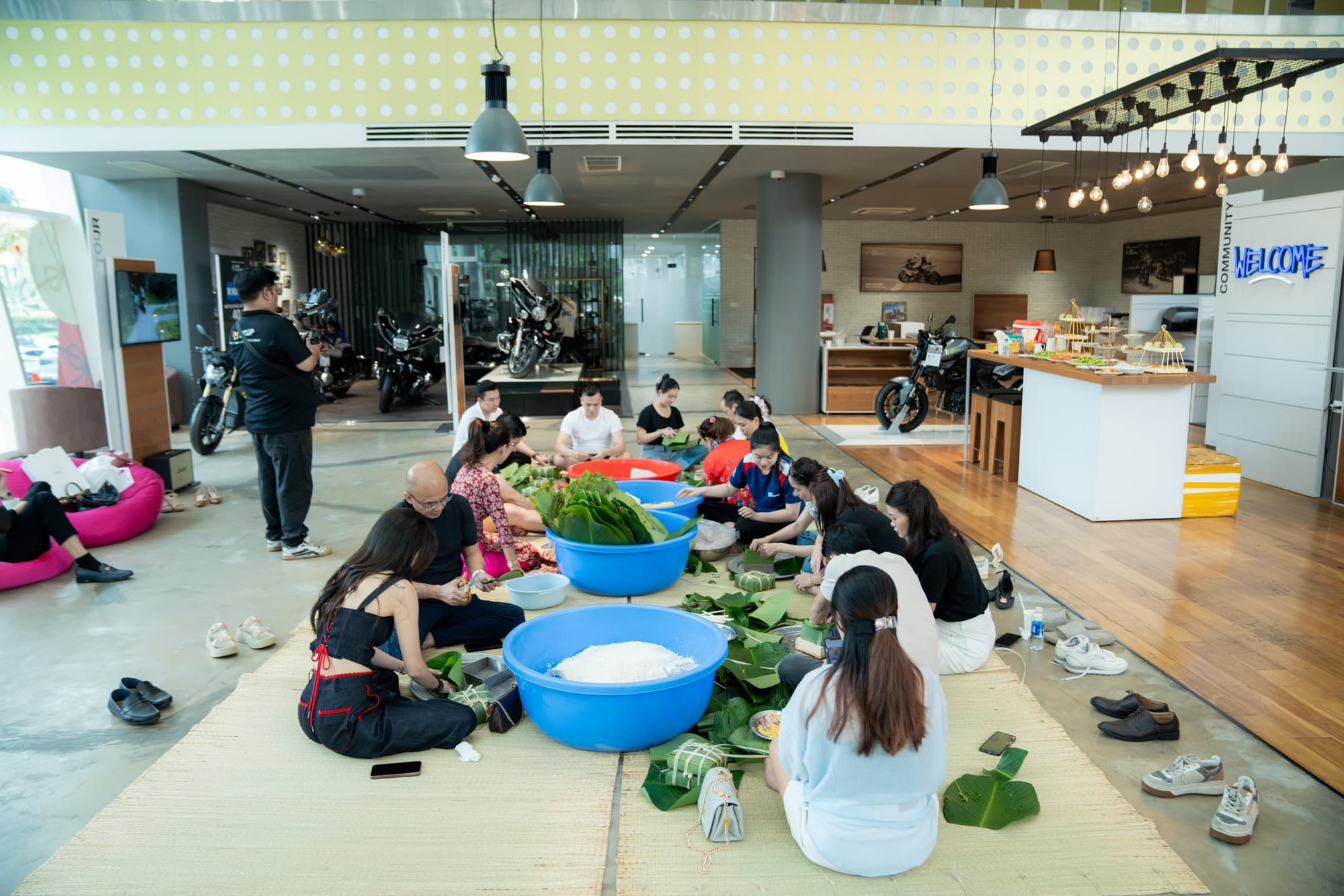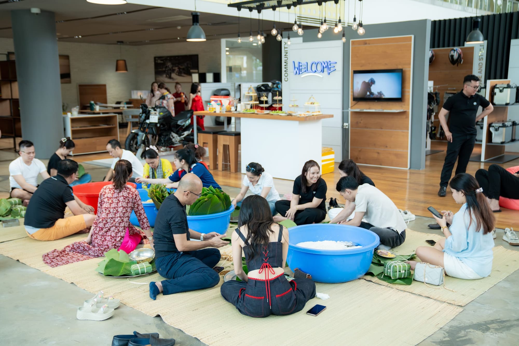 Ngay khi kết thúc chương trình Roadshow anh chị em Bimmer đã tập trung để bắt đầu chương trình gói bánh, mùi thơm của nếp, mùi lá dong và mùi thịt ướp đã làm không khi gói bánh thêm Xuân. Người biết gói hỗ trợ người chưa biết gói từng chiếc bánh chưng, bánh tét ra đời trong sự vui mừng và phấn khích của những người lần đầu gói.