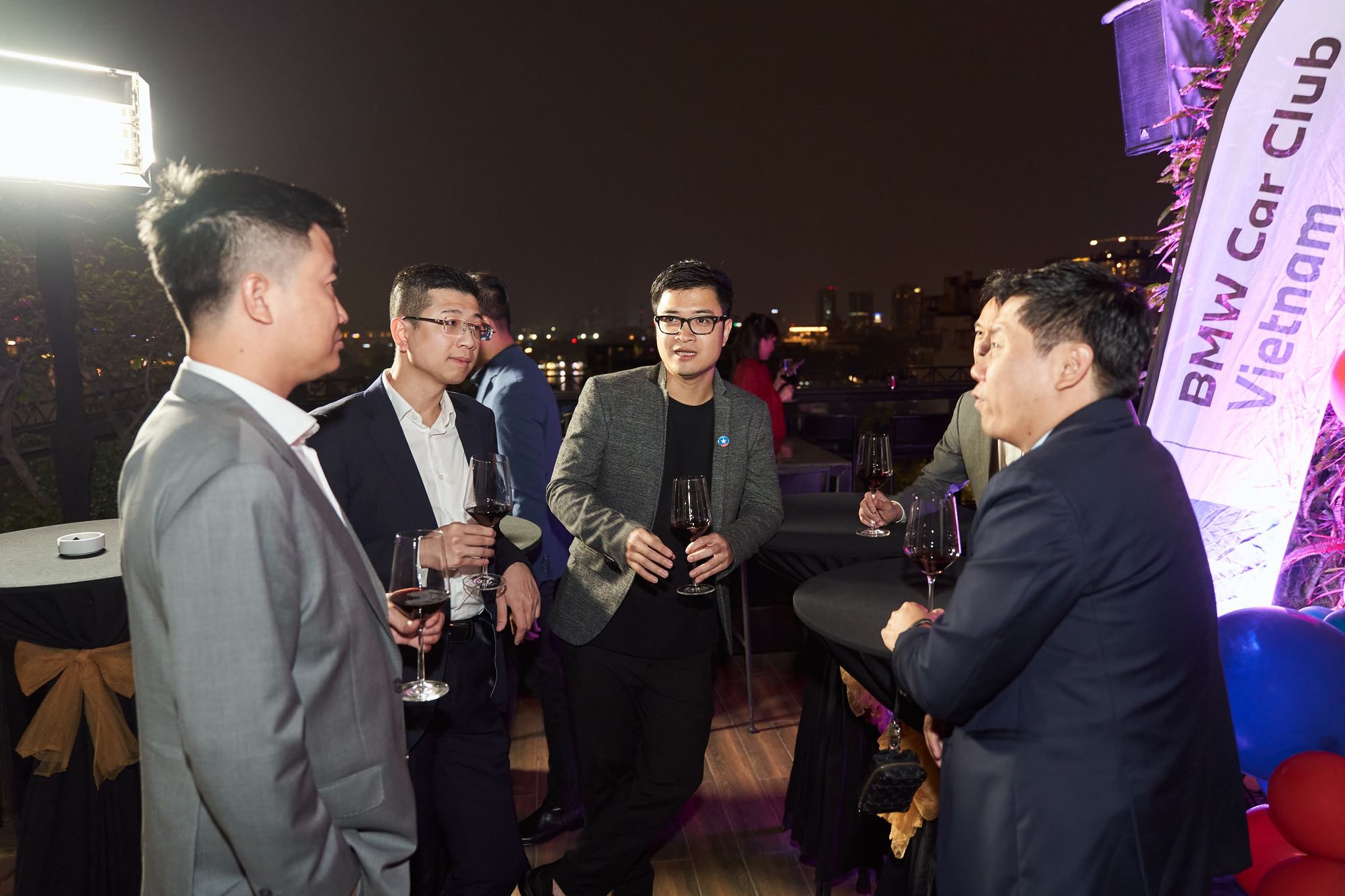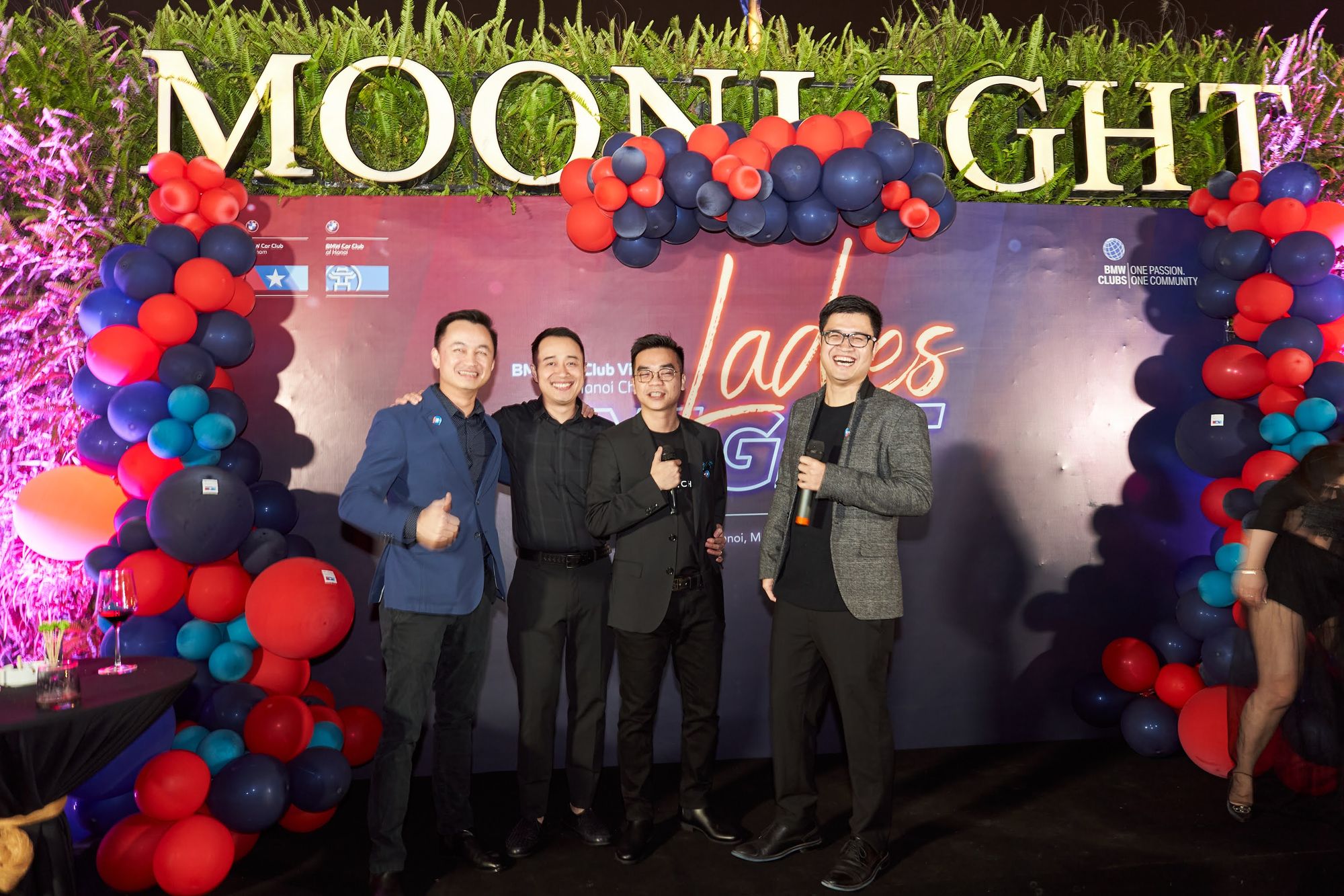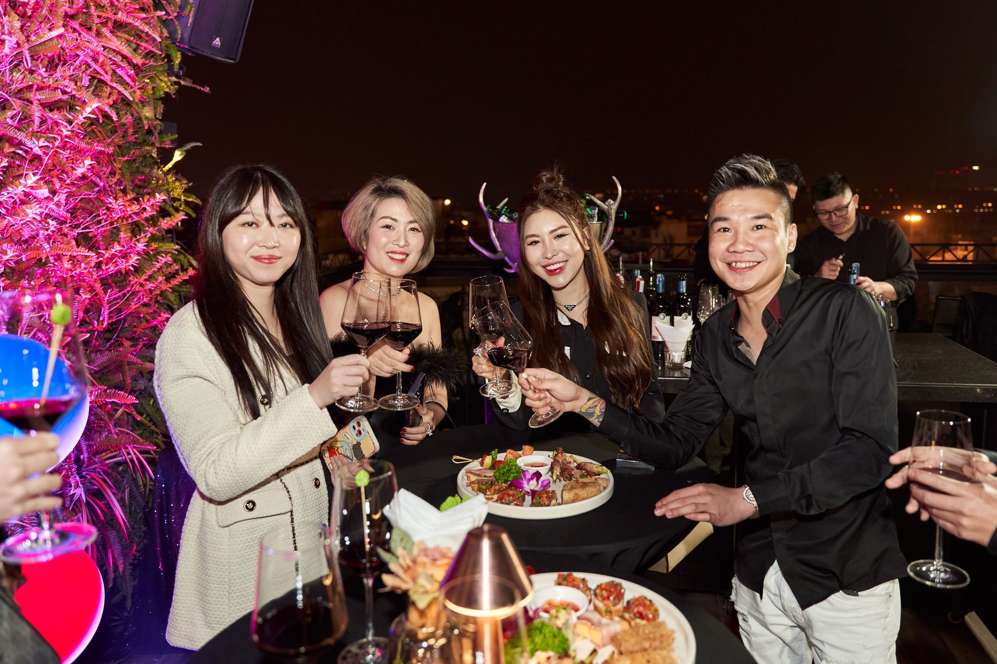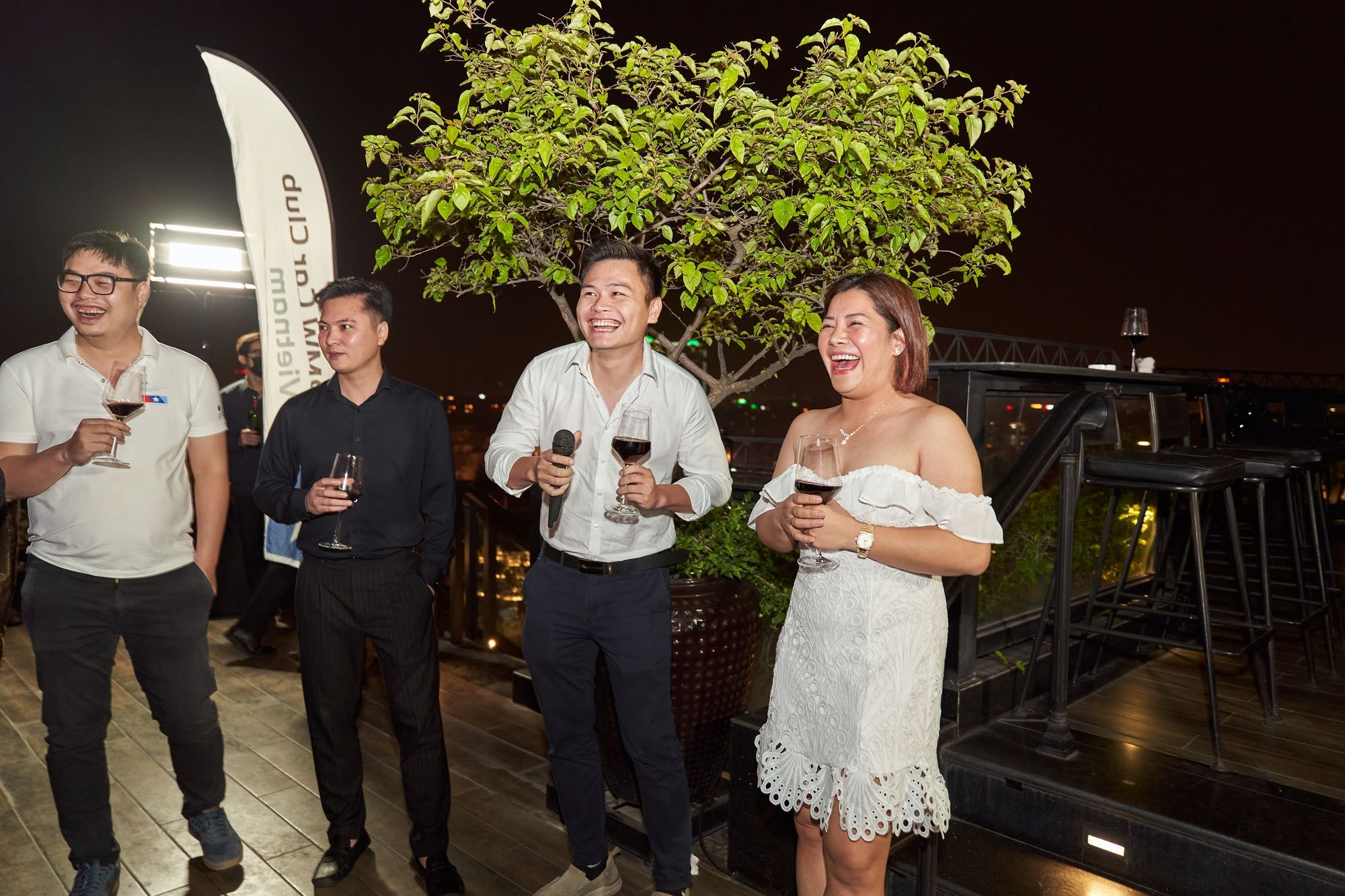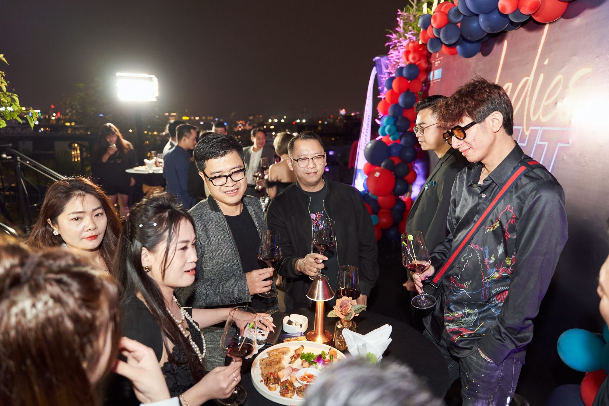 Buổi tiệc diễn ra tại Moonlight sky bar, tọa lạc trên nóc của khách sạn La Sieta với sự tham gia của gần 40 thành viên CLB, chiếm hơn 1/3 là nữ. Các chị em tới dự với những bộ cánh lộng lẫy và nổi bật, Còn cánh đàn ông thì nhìn nhau gượng gạo trong trang phục “quá lịch sự”. Để sự kiện diễn ra trọn vẹn, BTC đã quyết định thuê riêng tầng roof tại đây để các khách tới dự được tận hưởng một tối vô cùng tuyệt vời. Dưới ánh đèn sân khấu rực rỡ, những ly rượu vang đượm nồng khiến bầu không khí vô cùng sôi động giữa trời xuân Hà Nội.
