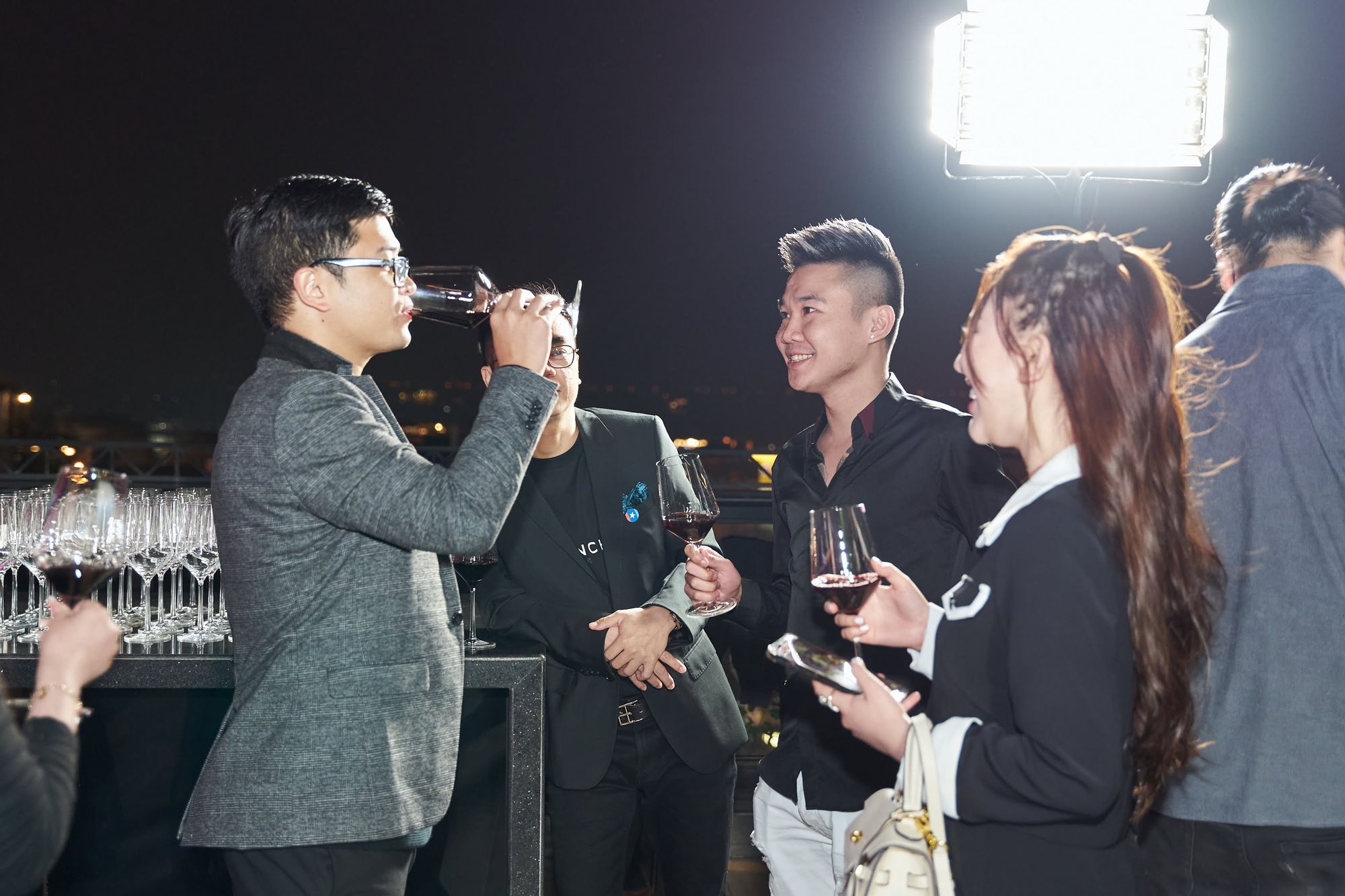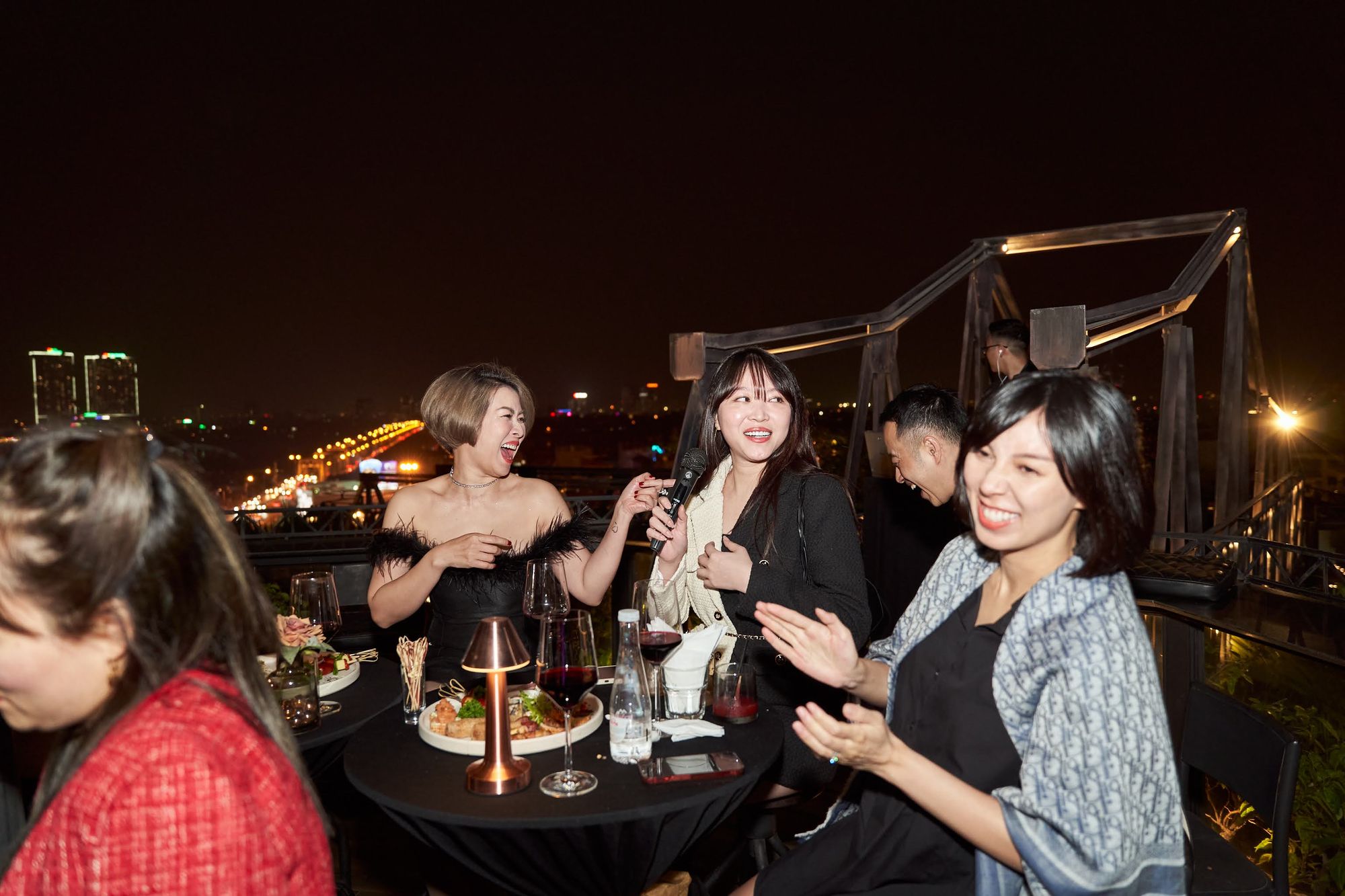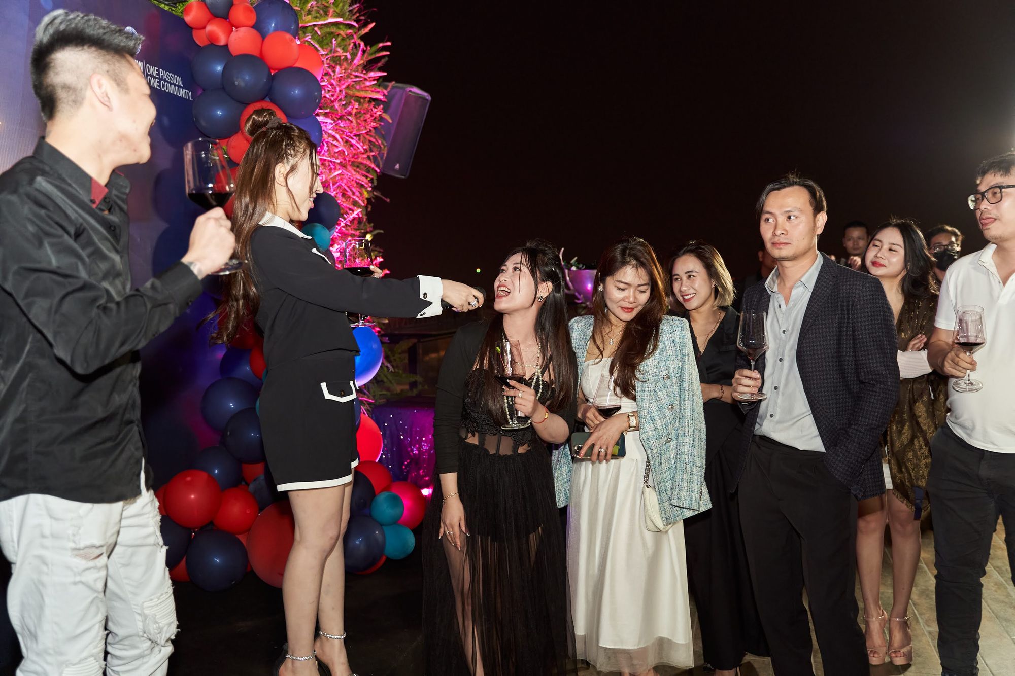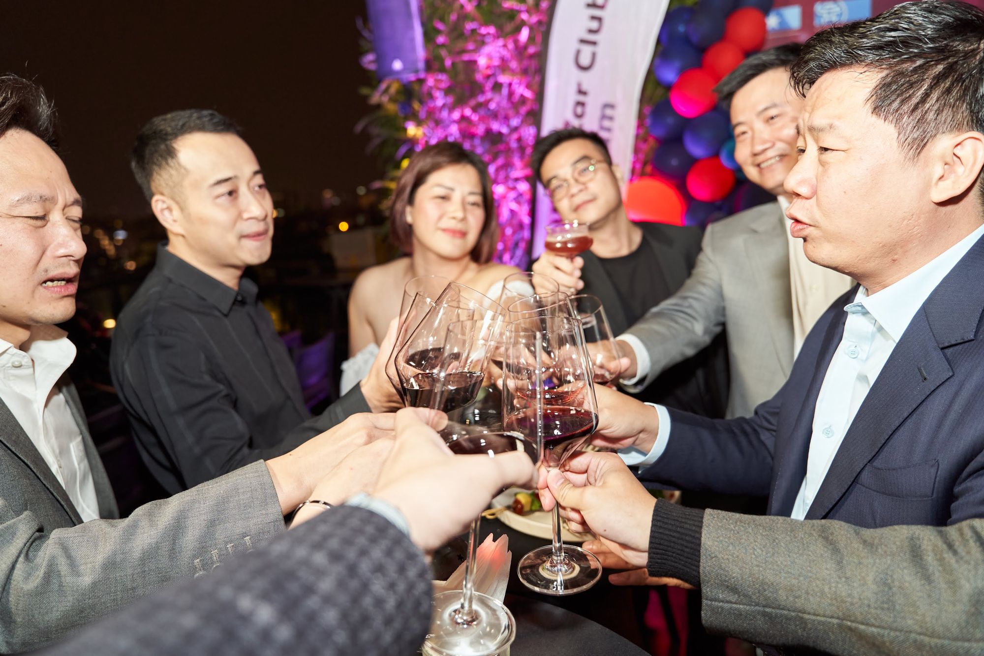 Buổi tiệc diễn ra tại Moonlight sky bar, tọa lạc trên nóc của khách sạn La Sieta với sự tham gia của gần 40 thành viên CLB, chiếm hơn 1/3 là nữ. Các chị em tới dự với những bộ cánh lộng lẫy và nổi bật, Còn cánh đàn ông thì nhìn nhau gượng gạo trong trang phục “quá lịch sự”. Để sự kiện diễn ra trọn vẹn, BTC đã quyết định thuê riêng tầng roof tại đây để các khách tới dự được tận hưởng một tối vô cùng tuyệt vời. Dưới ánh đèn sân khấu rực rỡ, những ly rượu vang đượm nồng khiến bầu không khí vô cùng sôi động giữa trời xuân Hà Nội.