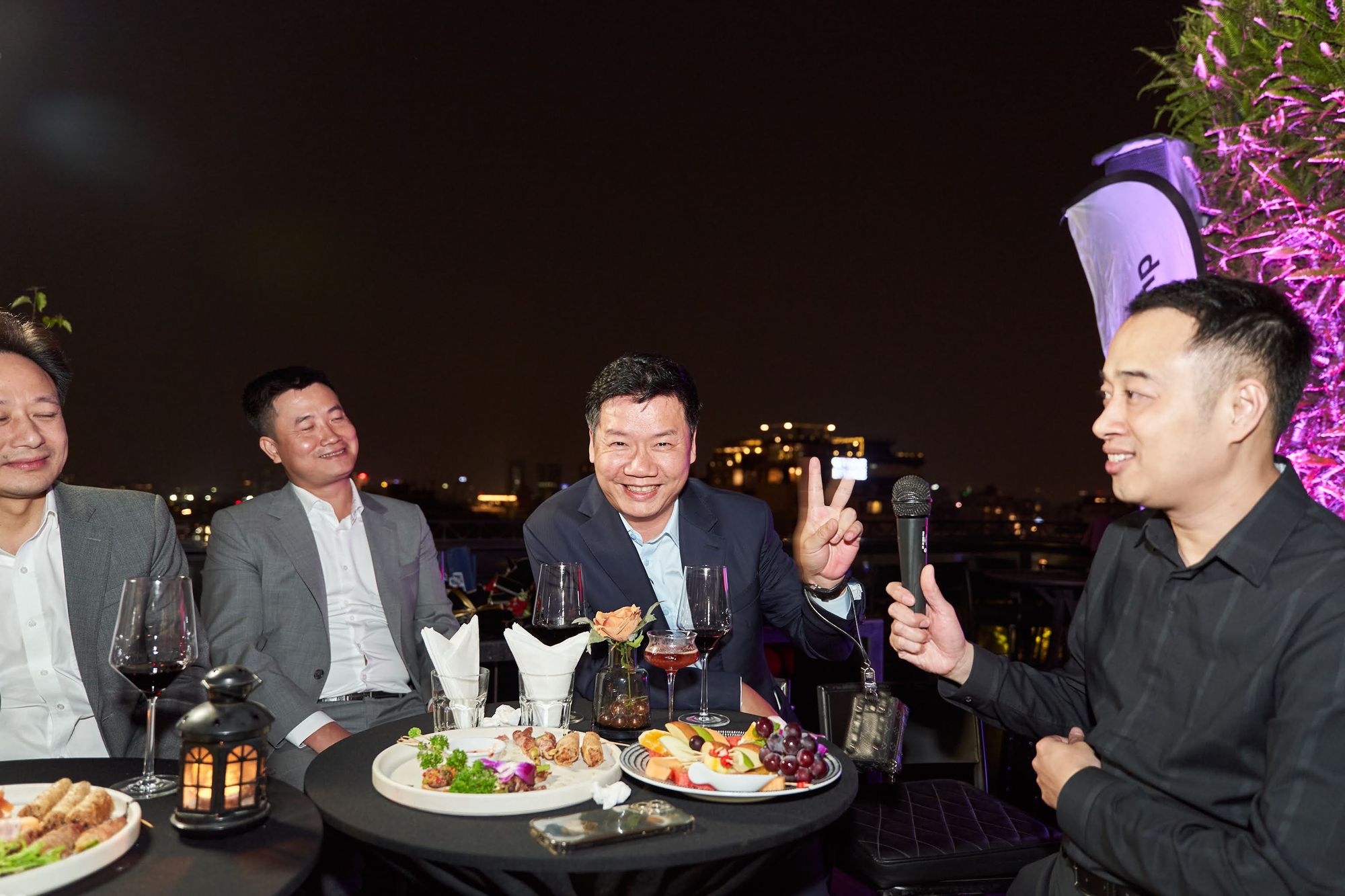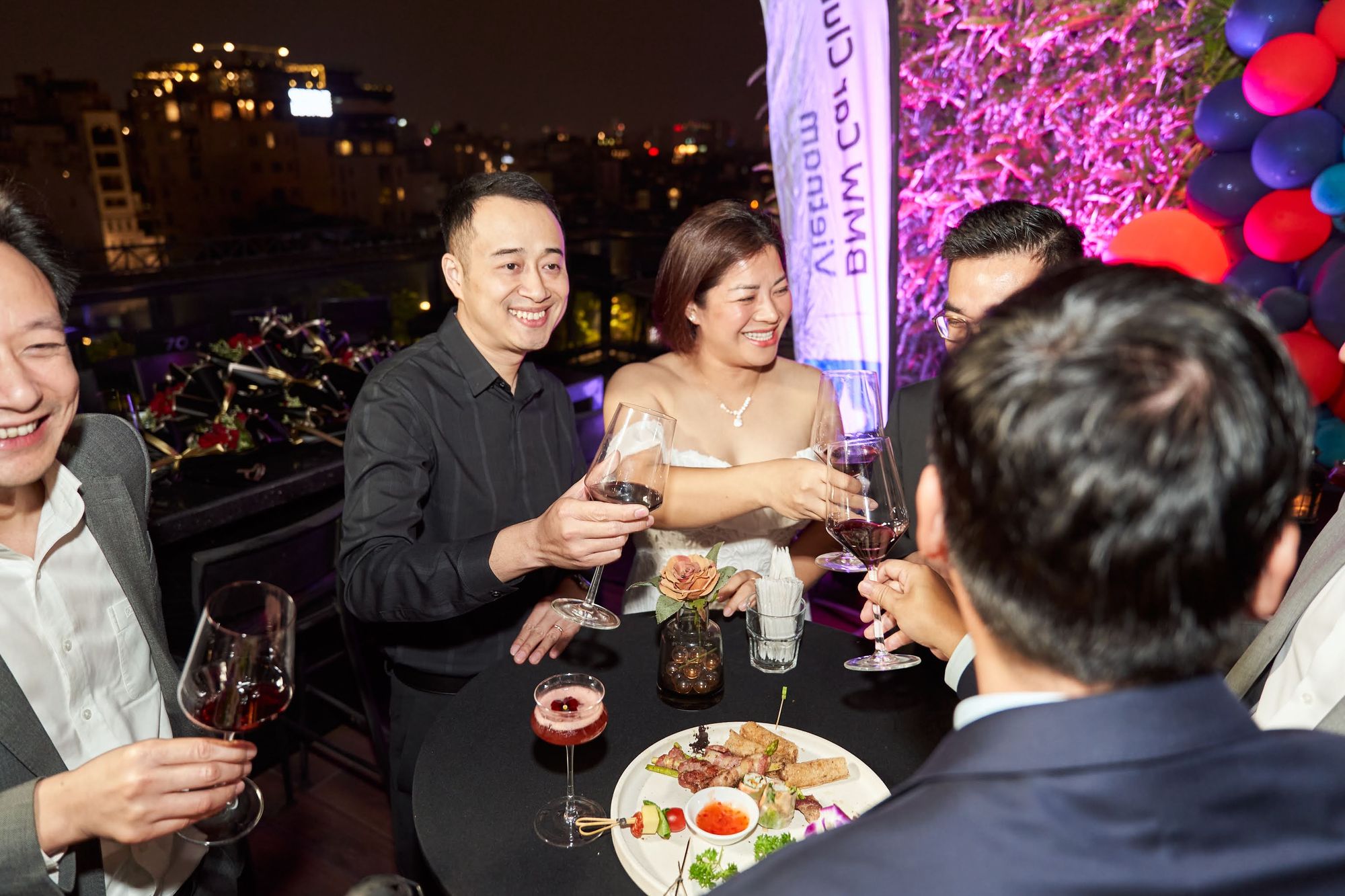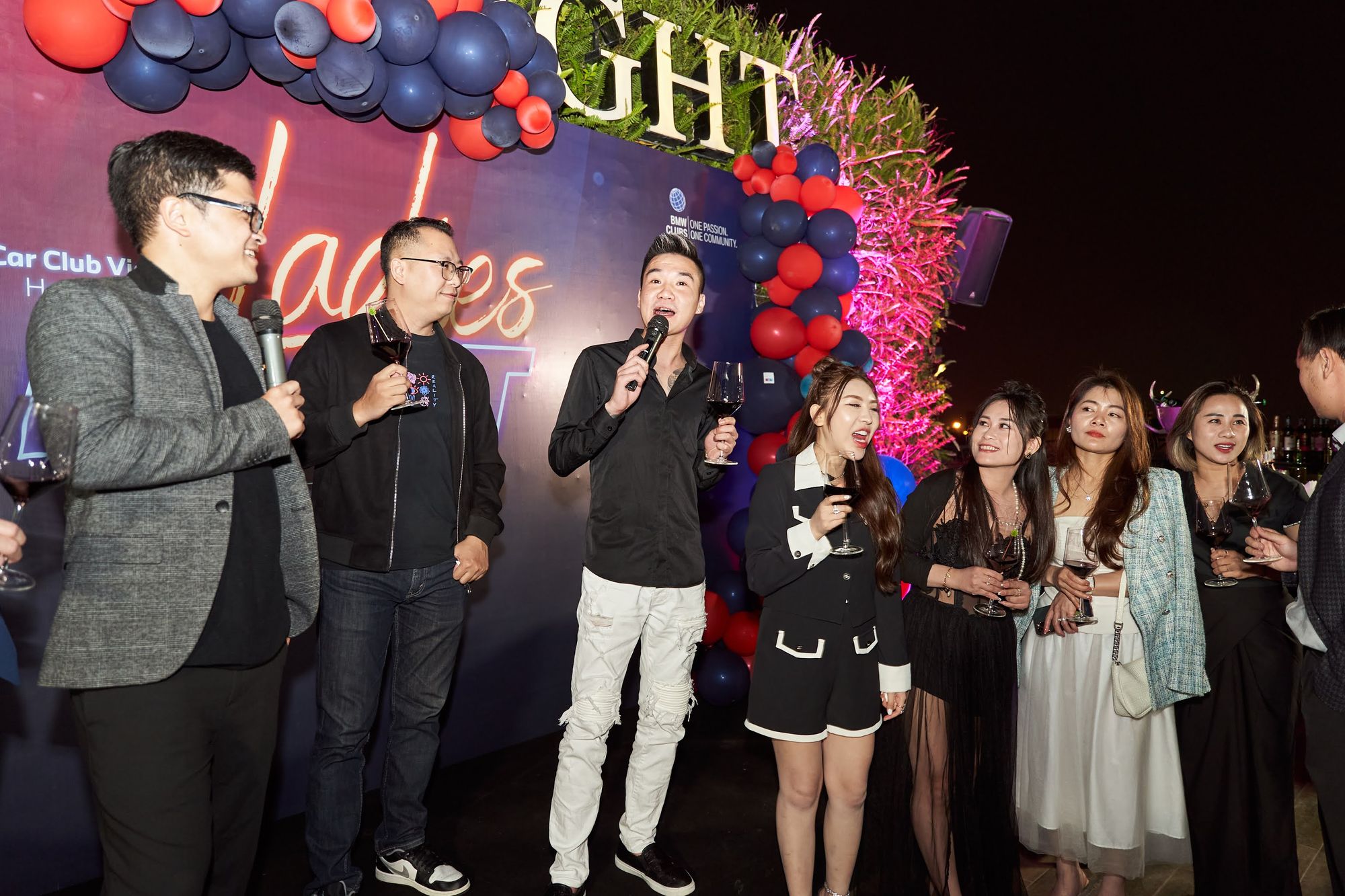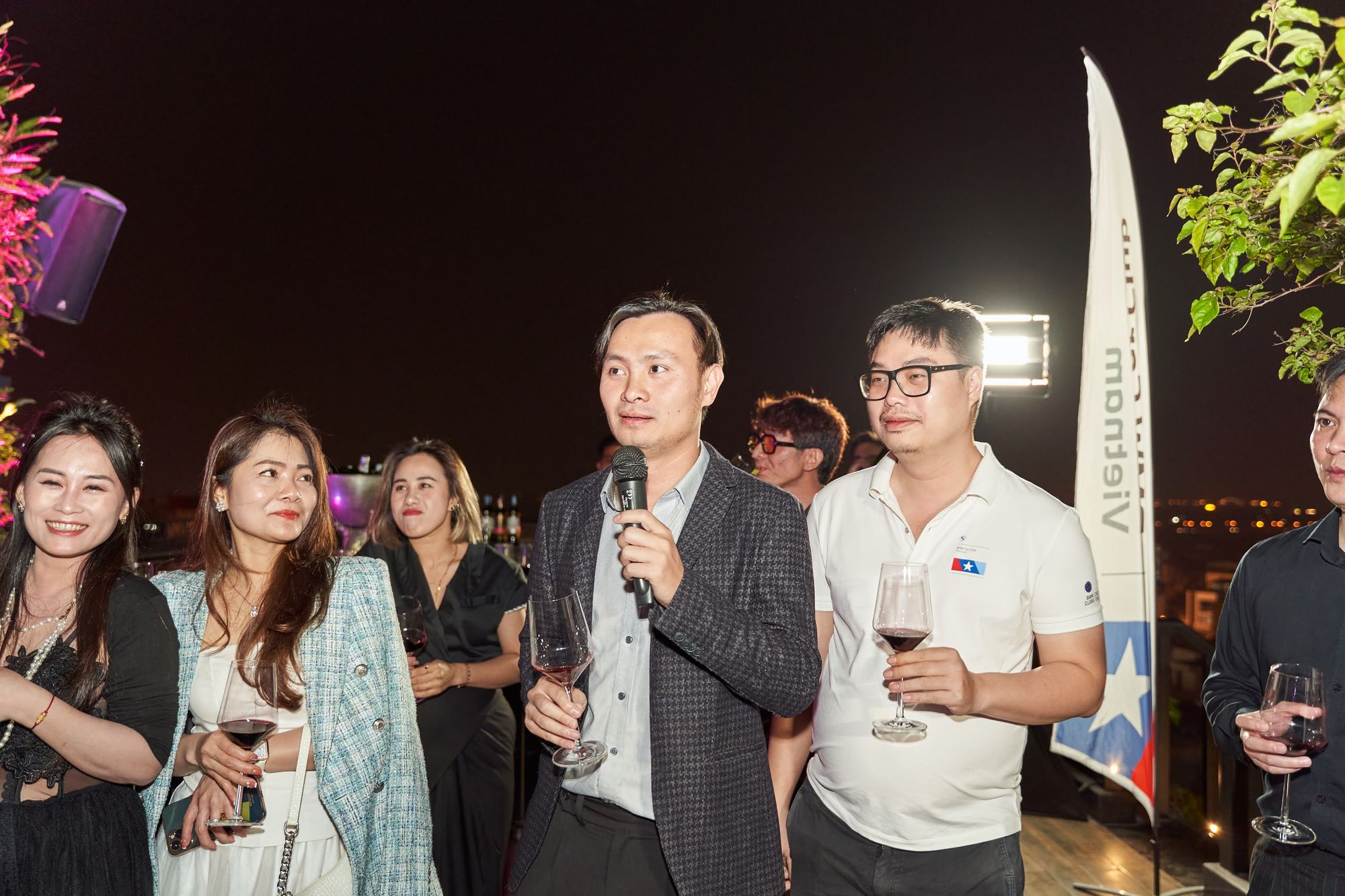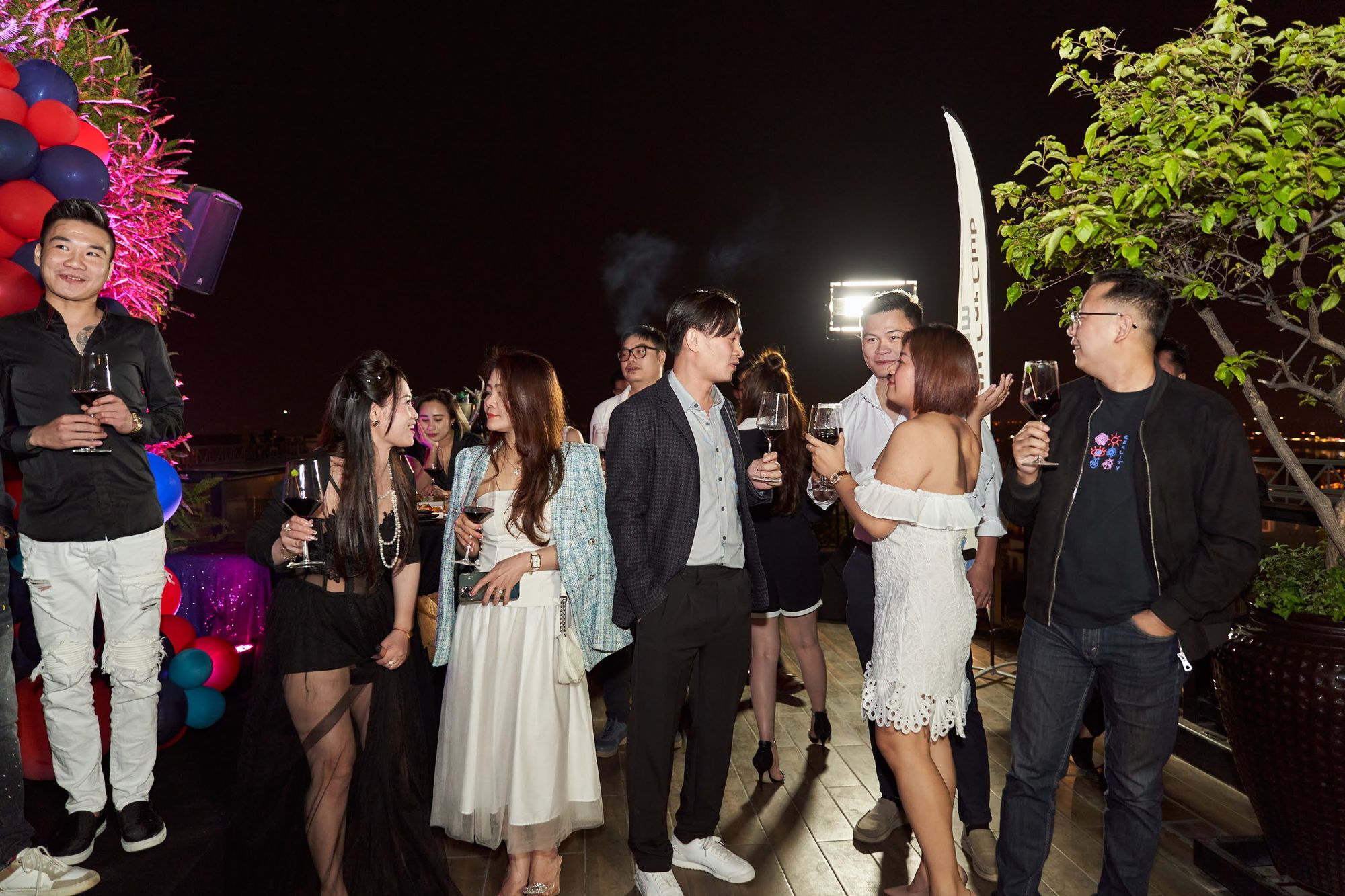 Buổi tiệc diễn ra tại Moonlight sky bar, tọa lạc trên nóc của khách sạn La Sieta với sự tham gia của gần 40 thành viên CLB, chiếm hơn 1/3 là nữ. Các chị em tới dự với những bộ cánh lộng lẫy và nổi bật, Còn cánh đàn ông thì nhìn nhau gượng gạo trong trang phục “quá lịch sự”. Để sự kiện diễn ra trọn vẹn, BTC đã quyết định thuê riêng tầng roof tại đây để các khách tới dự được tận hưởng một tối vô cùng tuyệt vời. Dưới ánh đèn sân khấu rực rỡ, những ly rượu vang đượm nồng khiến bầu không khí vô cùng sôi động giữa trời xuân Hà Nội.