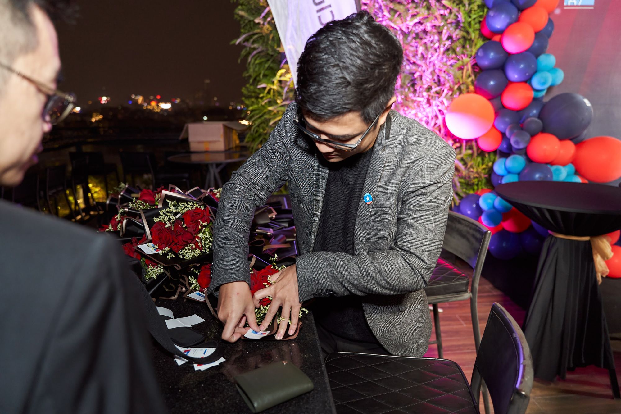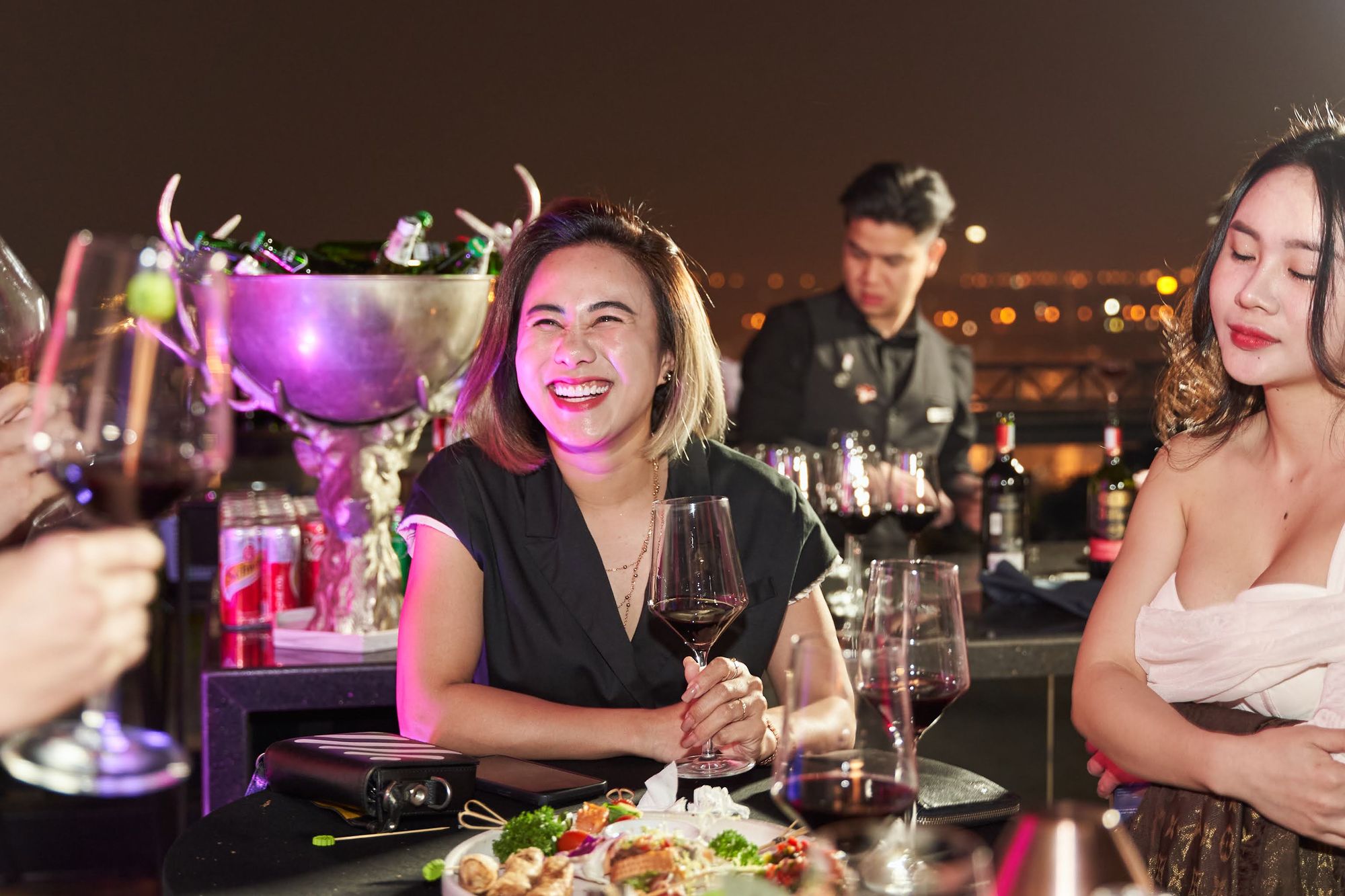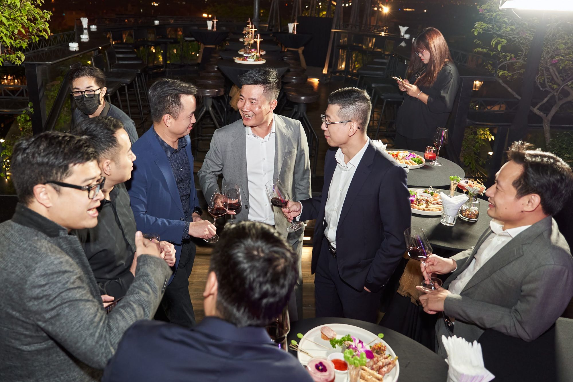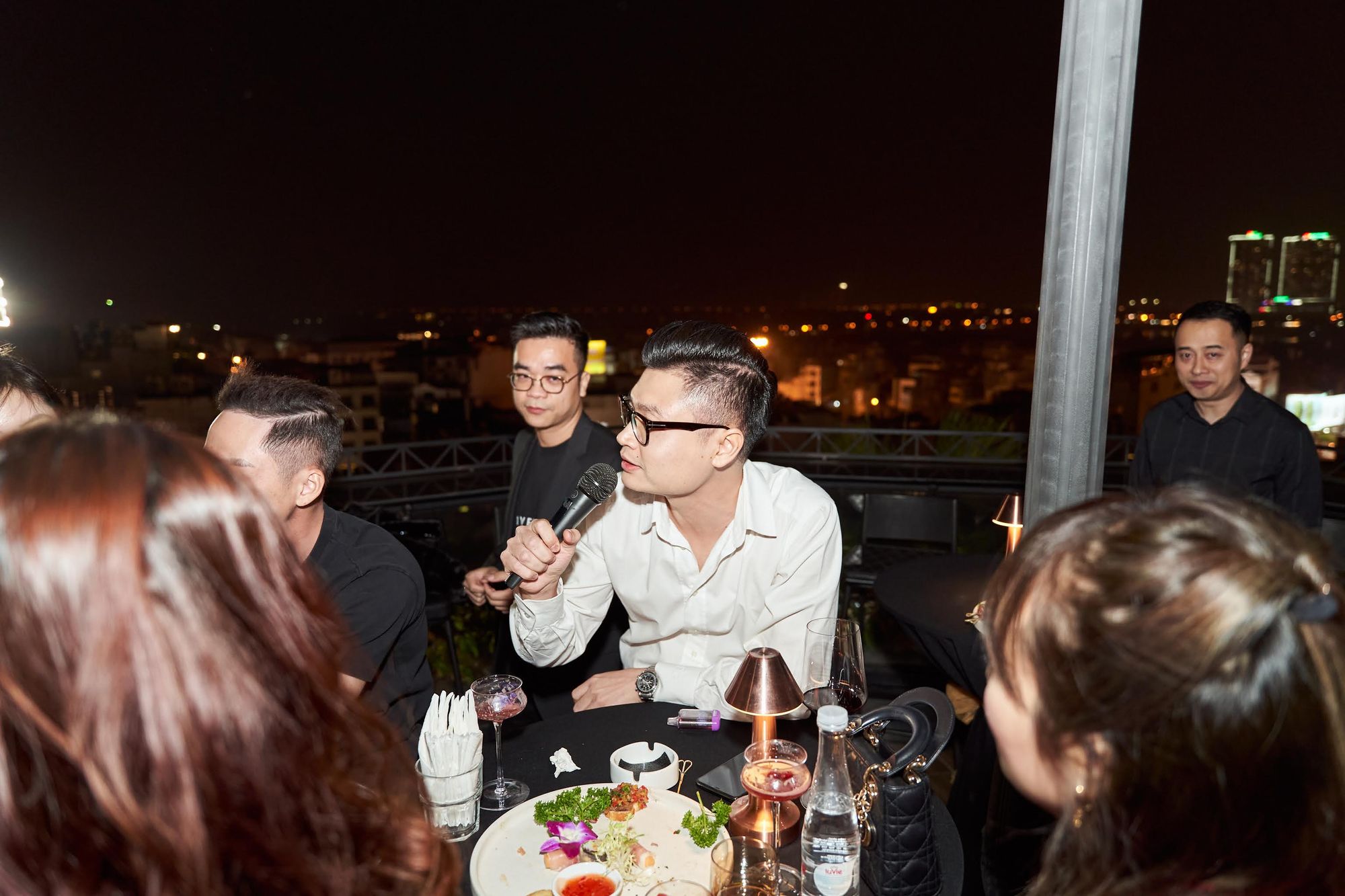Buổi tiệc diễn ra tại Moonlight sky bar, tọa lạc trên nóc của khách sạn La Sieta với sự tham gia của gần 40 thành viên CLB, chiếm hơn 1/3 là nữ. Các chị em tới dự với những bộ cánh lộng lẫy và nổi bật, Còn cánh đàn ông thì nhìn nhau gượng gạo trong trang phục “quá lịch sự”. Để sự kiện diễn ra trọn vẹn, BTC đã quyết định thuê riêng tầng roof tại đây để các khách tới dự được tận hưởng một tối vô cùng tuyệt vời. Dưới ánh đèn sân khấu rực rỡ, những ly rượu vang đượm nồng khiến bầu không khí vô cùng sôi động giữa trời xuân Hà Nội.