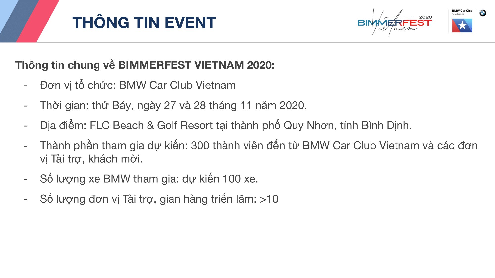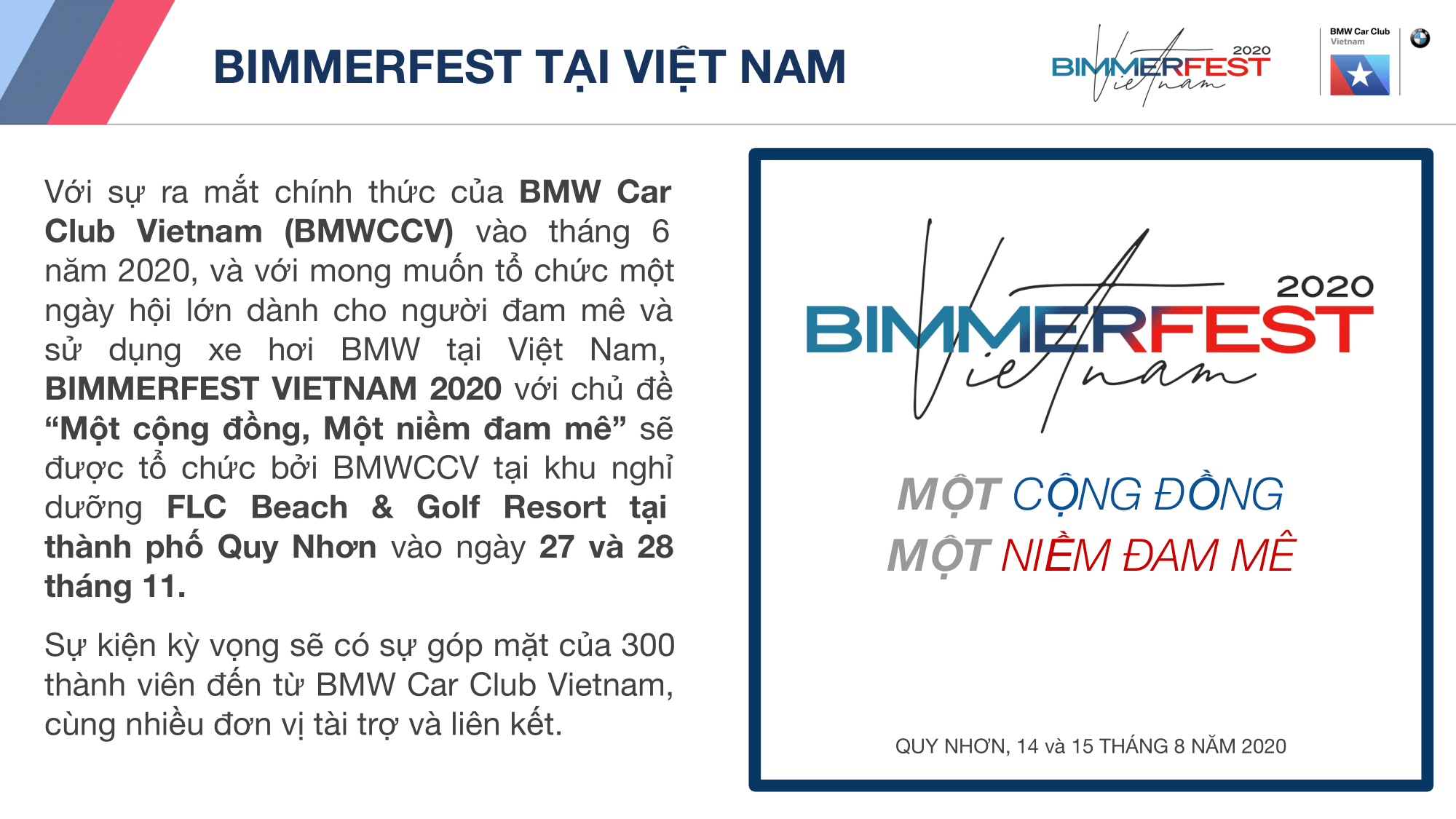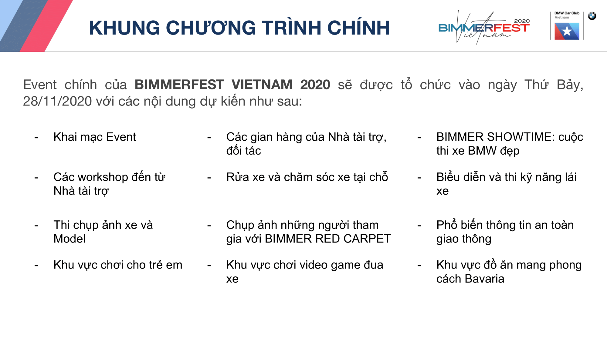 Update: 21/9/2020 - Khung chương trình chi tiết của Bimmerfest Vietnam 2020