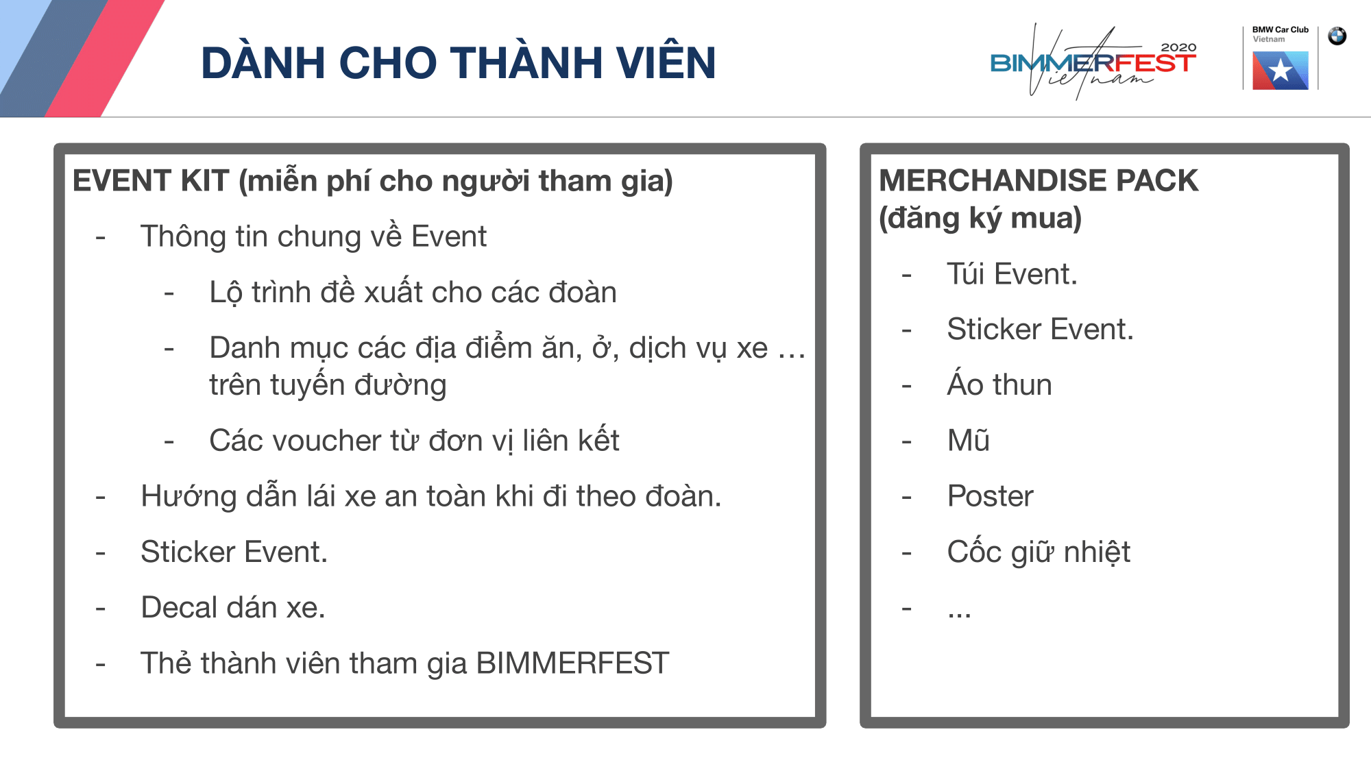 - *Tạm thời event sẽ chỉ được mở đăng kí với Club Member của BMWCCV.